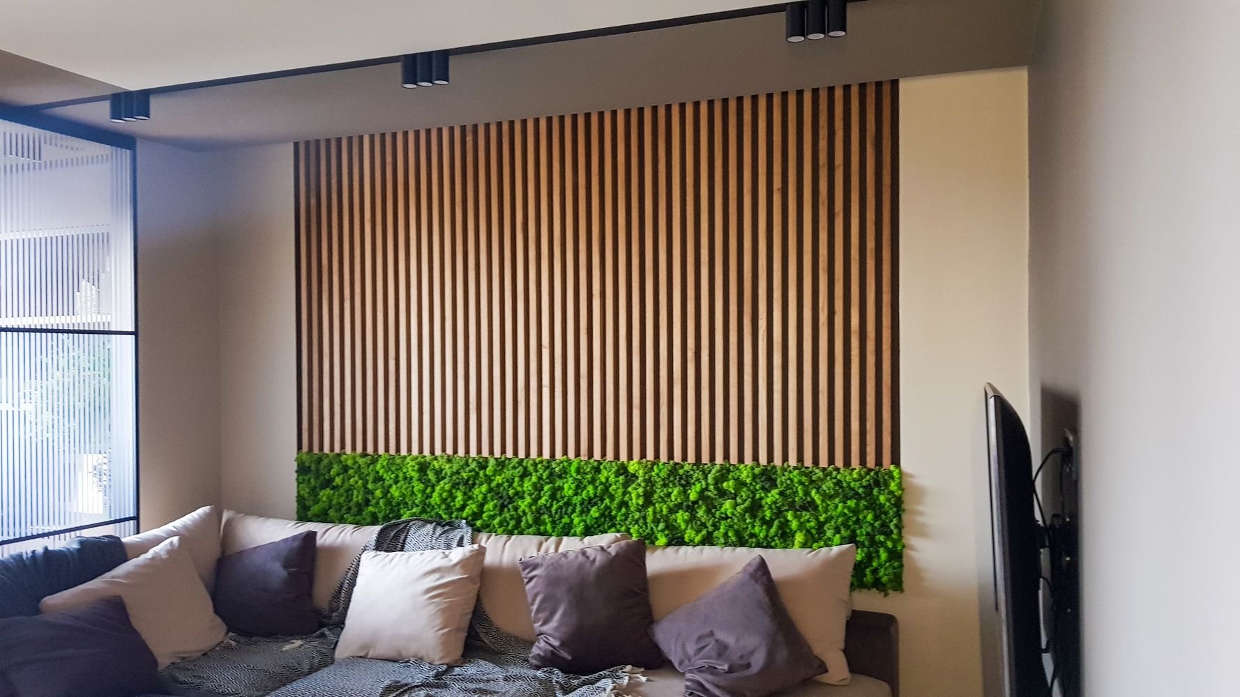 Стена с рейками в гостиной