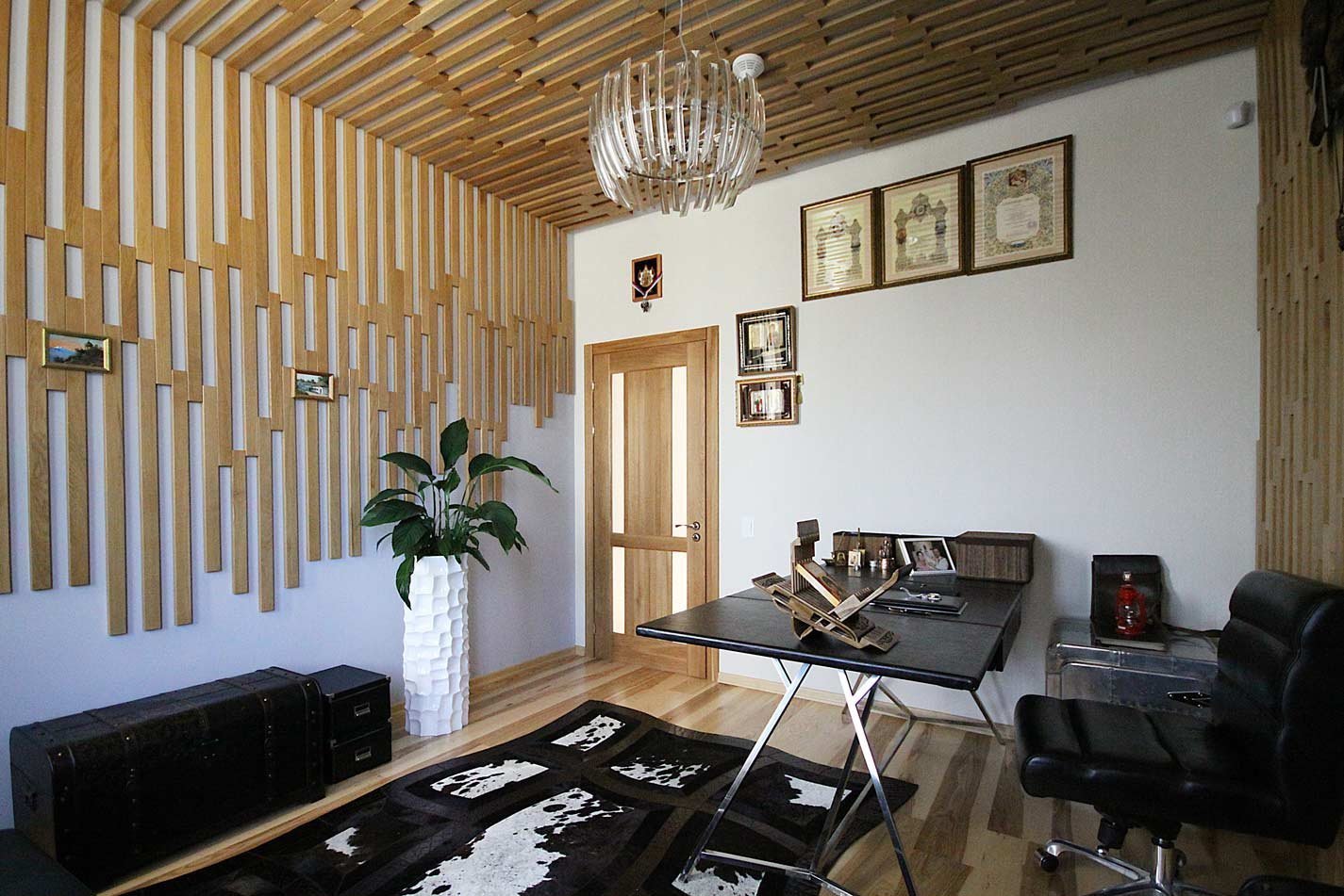 Деревянные рейки в интерьере