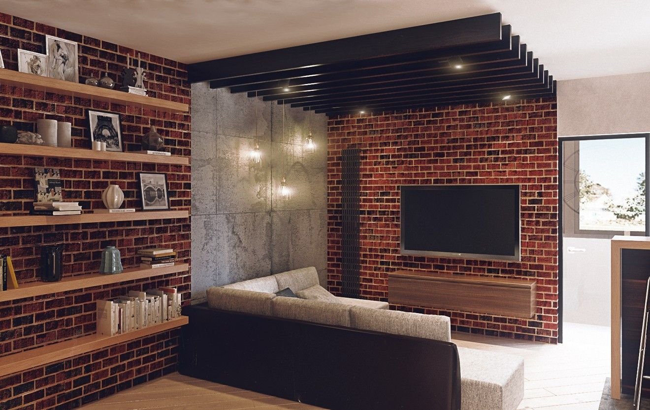 Кирпичная стена в интерьере