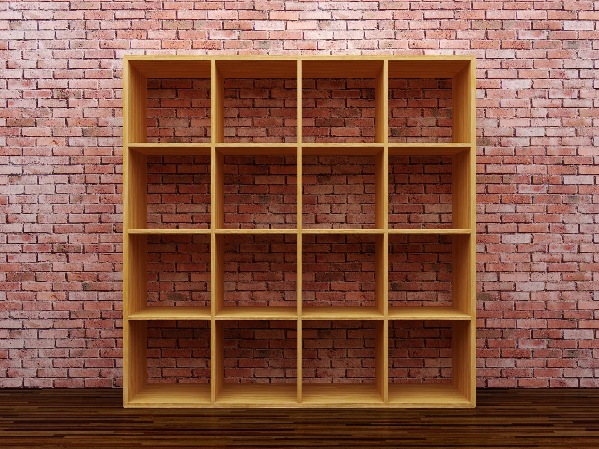 Кирпичная стена с полками