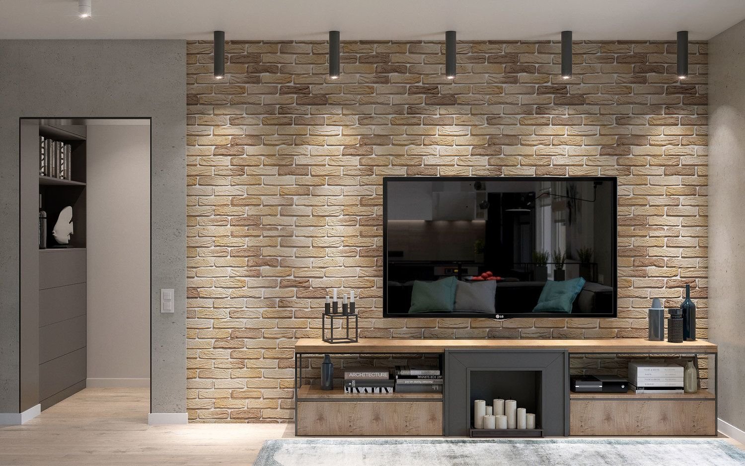 Стенка из кирпича в интерьере