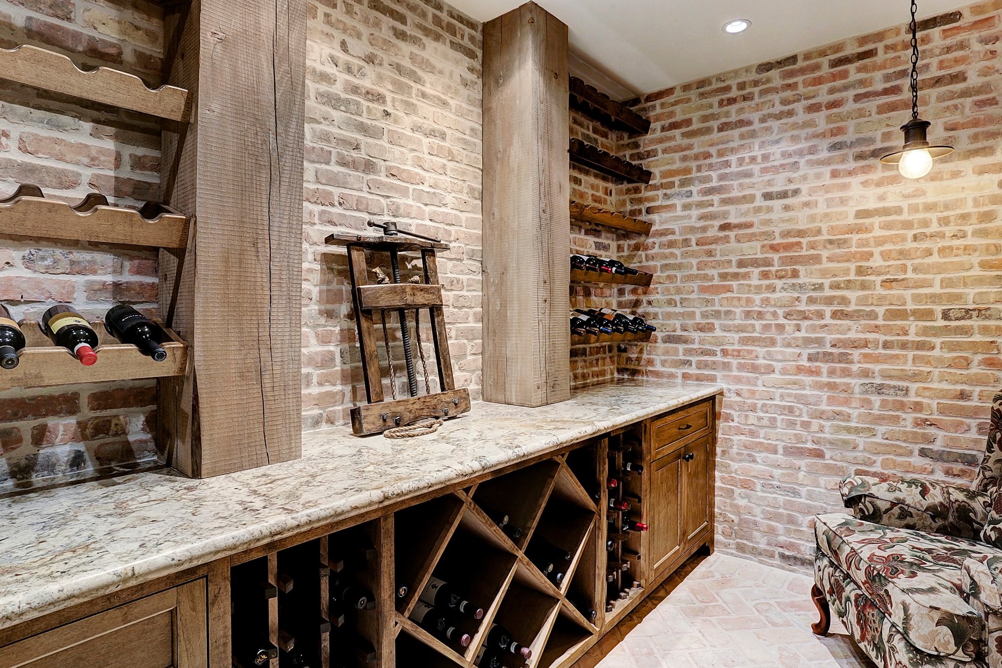 Кухня из кирпича и дерева в деревенском стиле