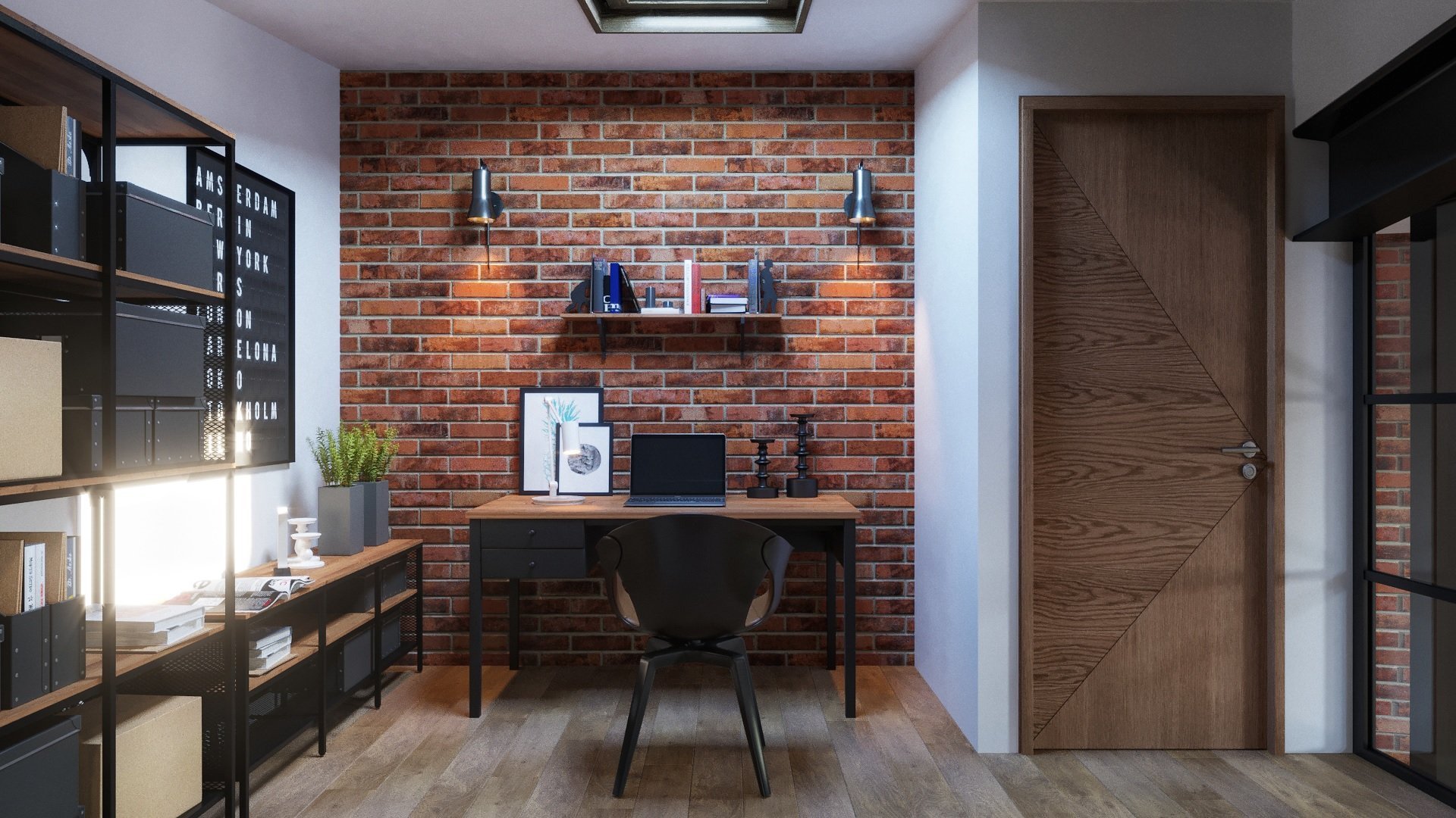 Стеллаж у кирпичной стены