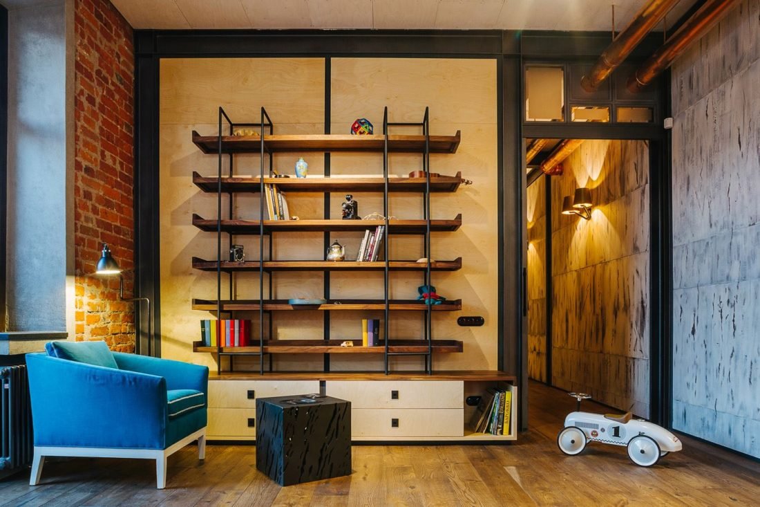 Встроенная полка в стиле лофт