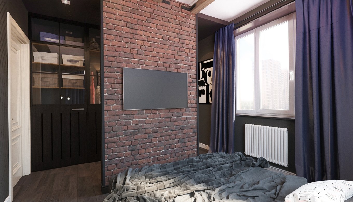 Интерьер спальни в стиле лофт