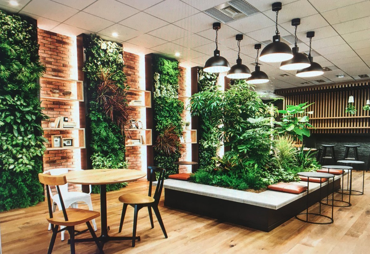 Зелень в интерьере кафе