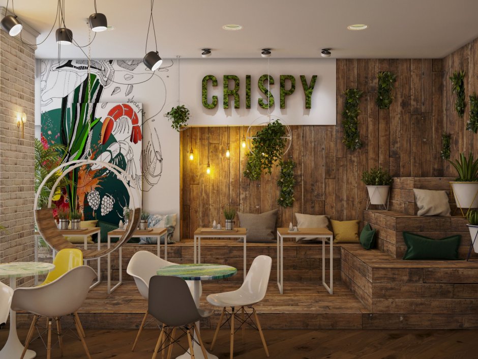 Экостиль в дизайне интерьера кафе