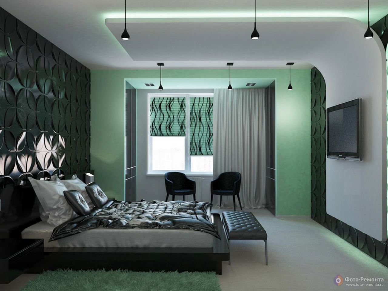 Спальня в черно зеленых тонах