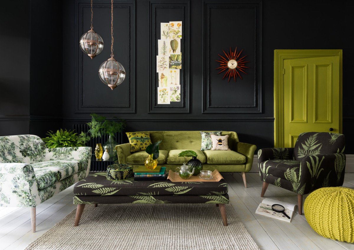 Гостиная в скандинавском стиле изумрудный цвет
