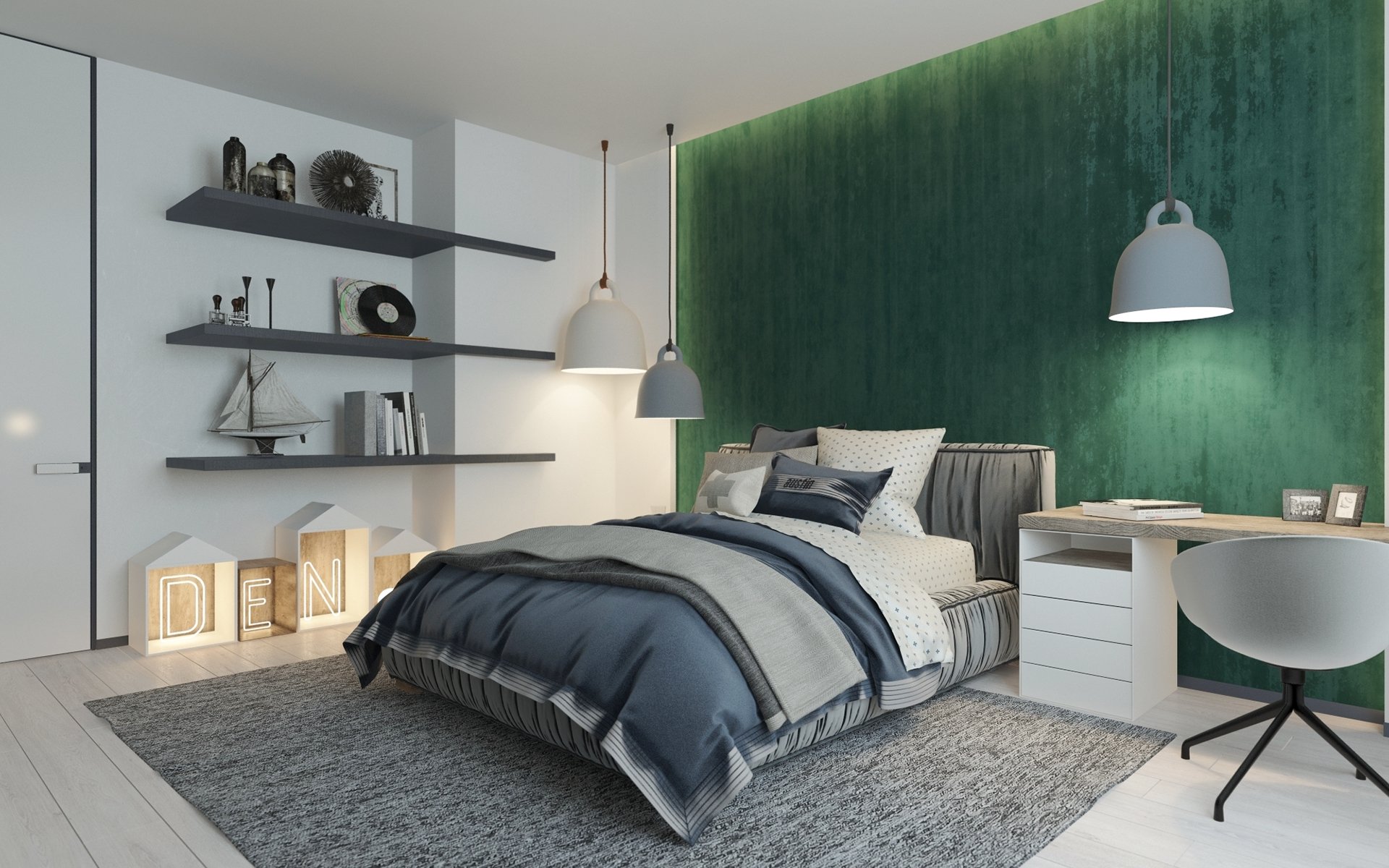 Комната для подростка в черно-зеленых тонах