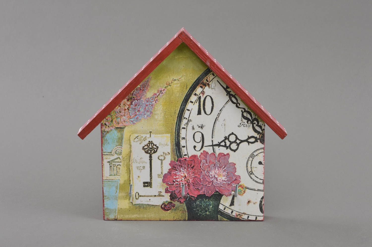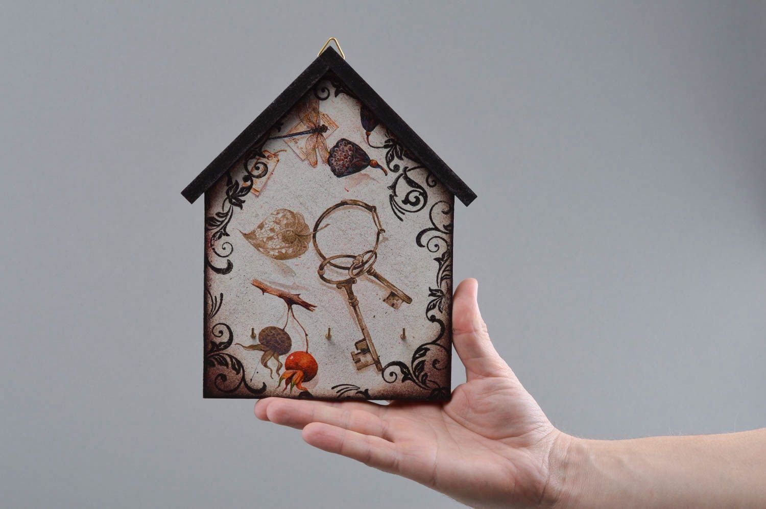 Ключница в виде домика из дерева