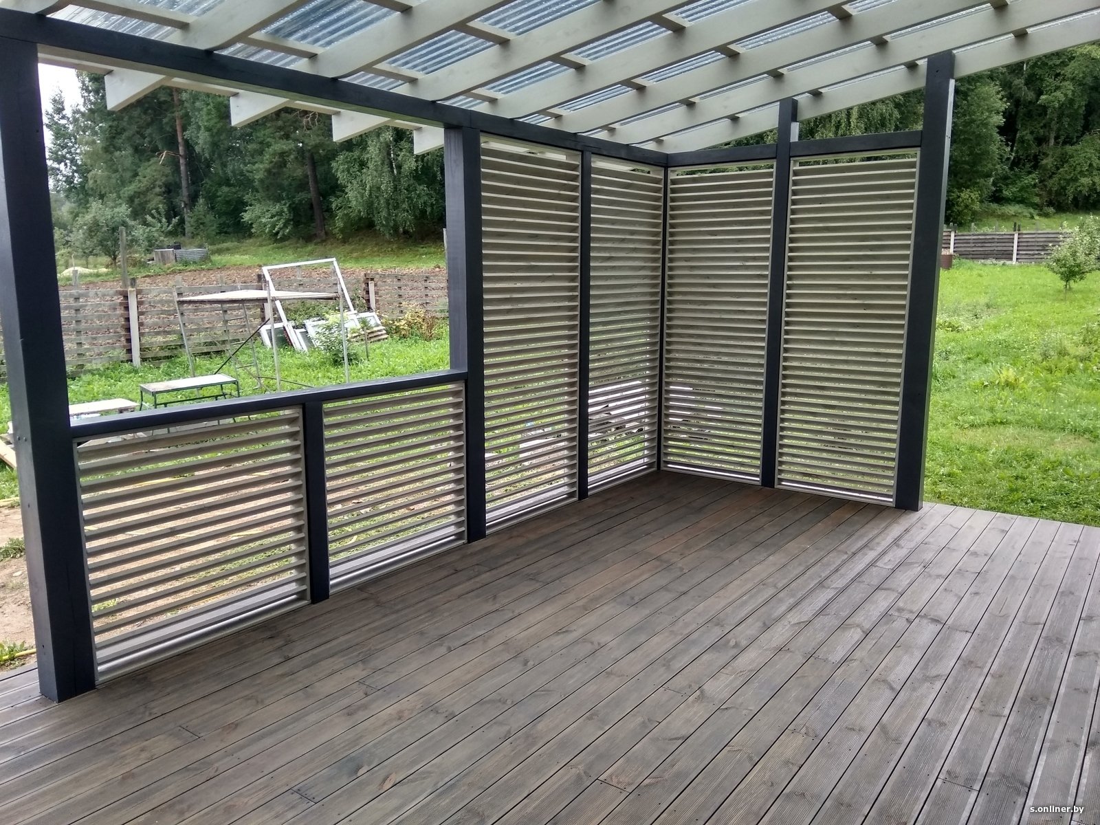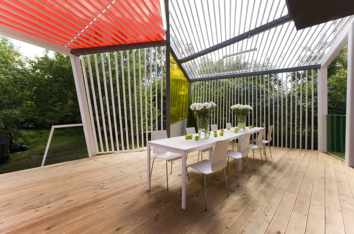Веранда с рейками в современном стиле