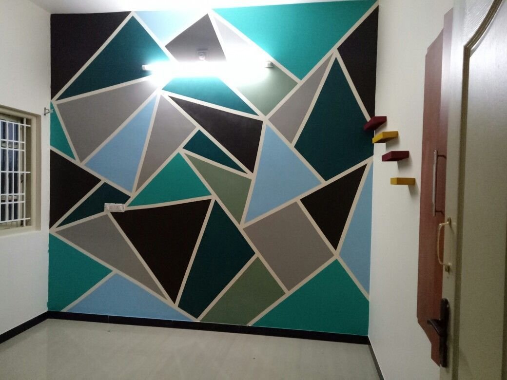 Покраска стены геометрическими фигурами