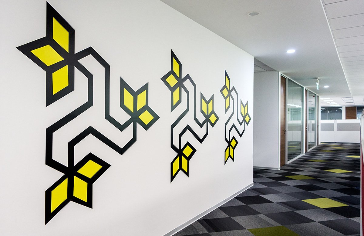Геометрический рисунок на стене в школе
