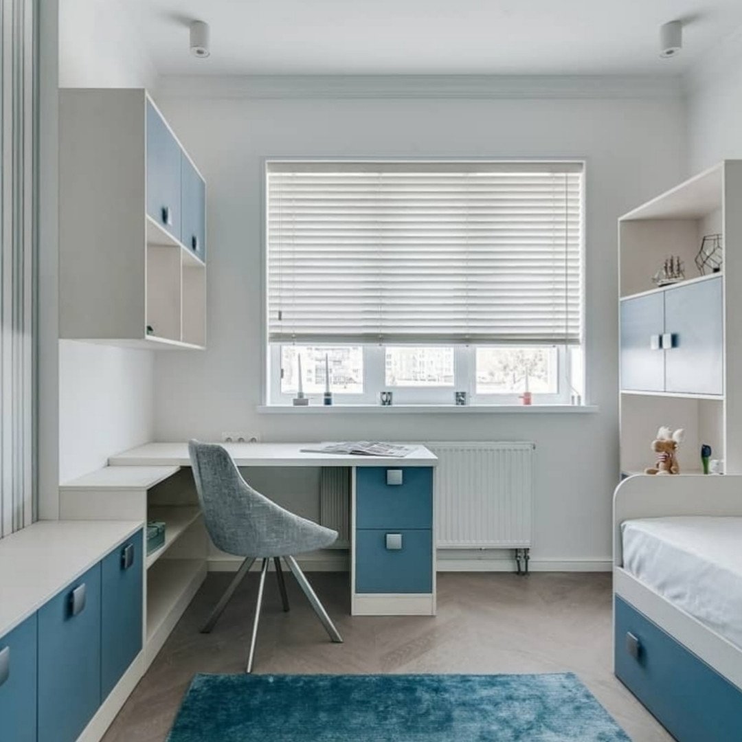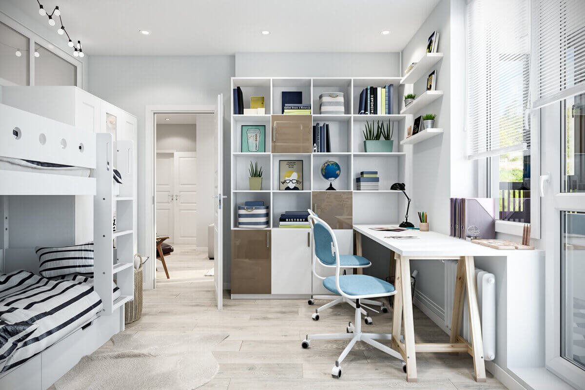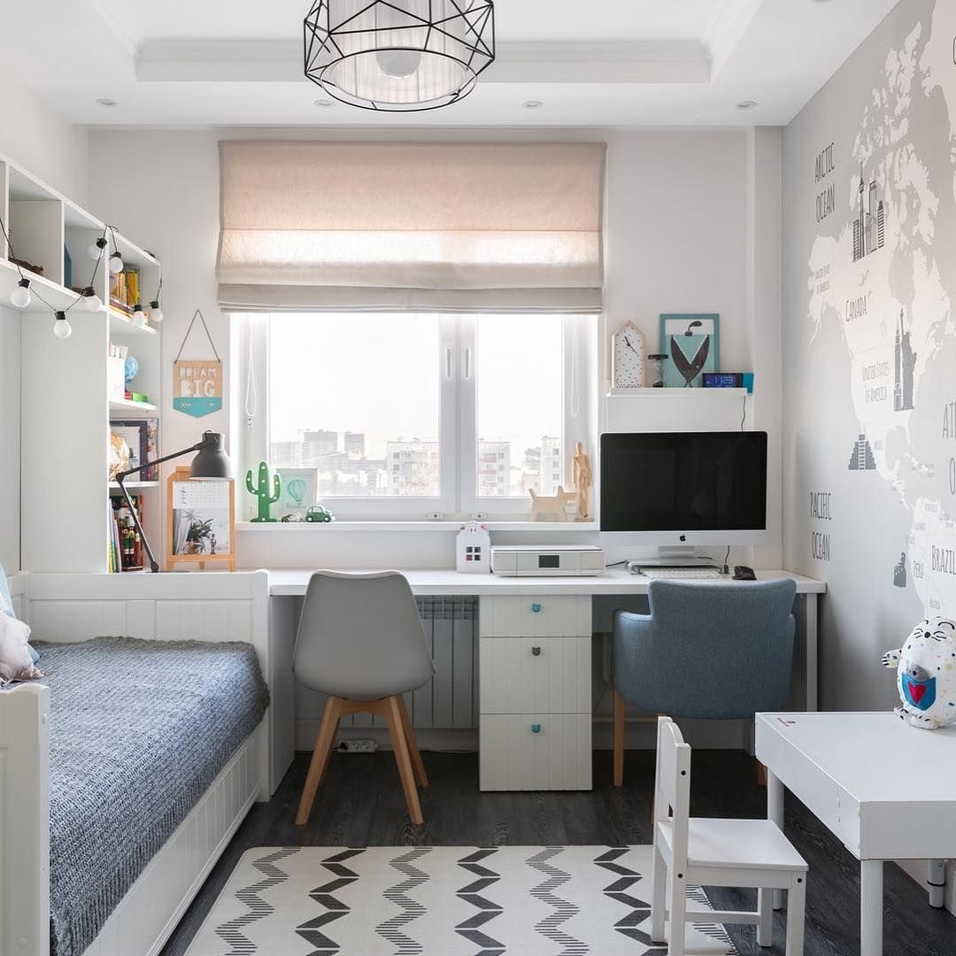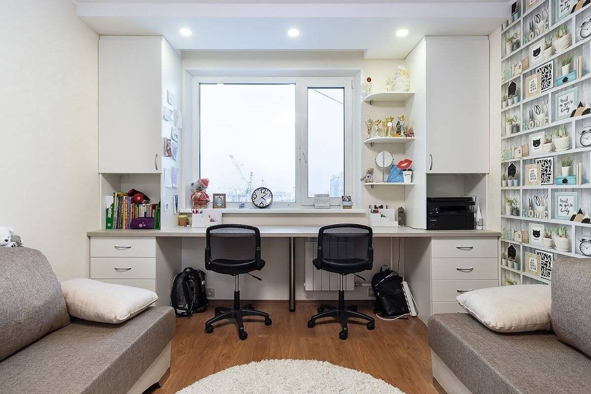 Рабочая зона у окна в детской для двоих