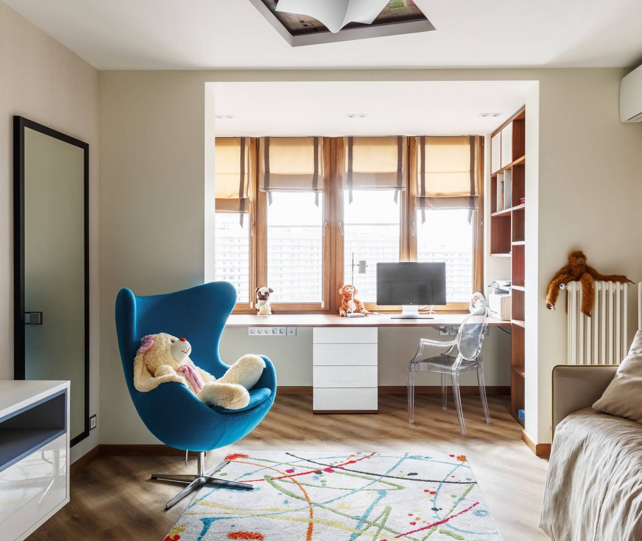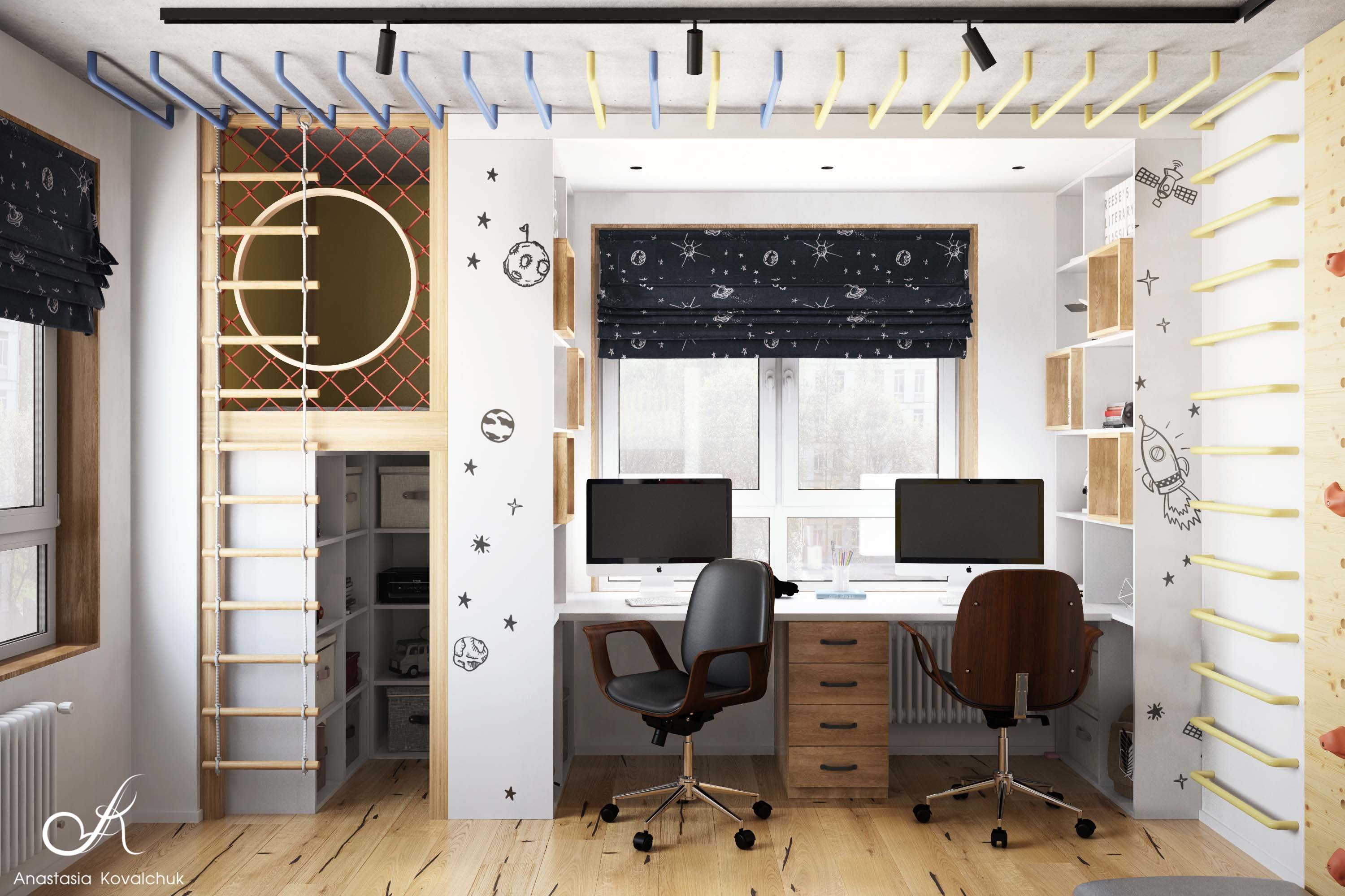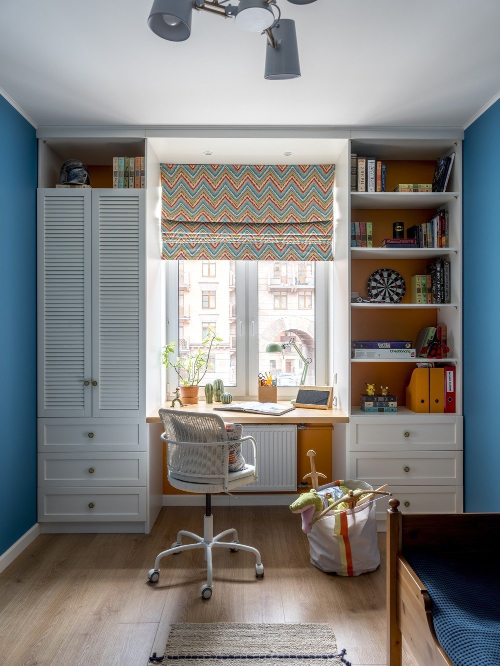 Рабочая зона у окна в детской для двоих