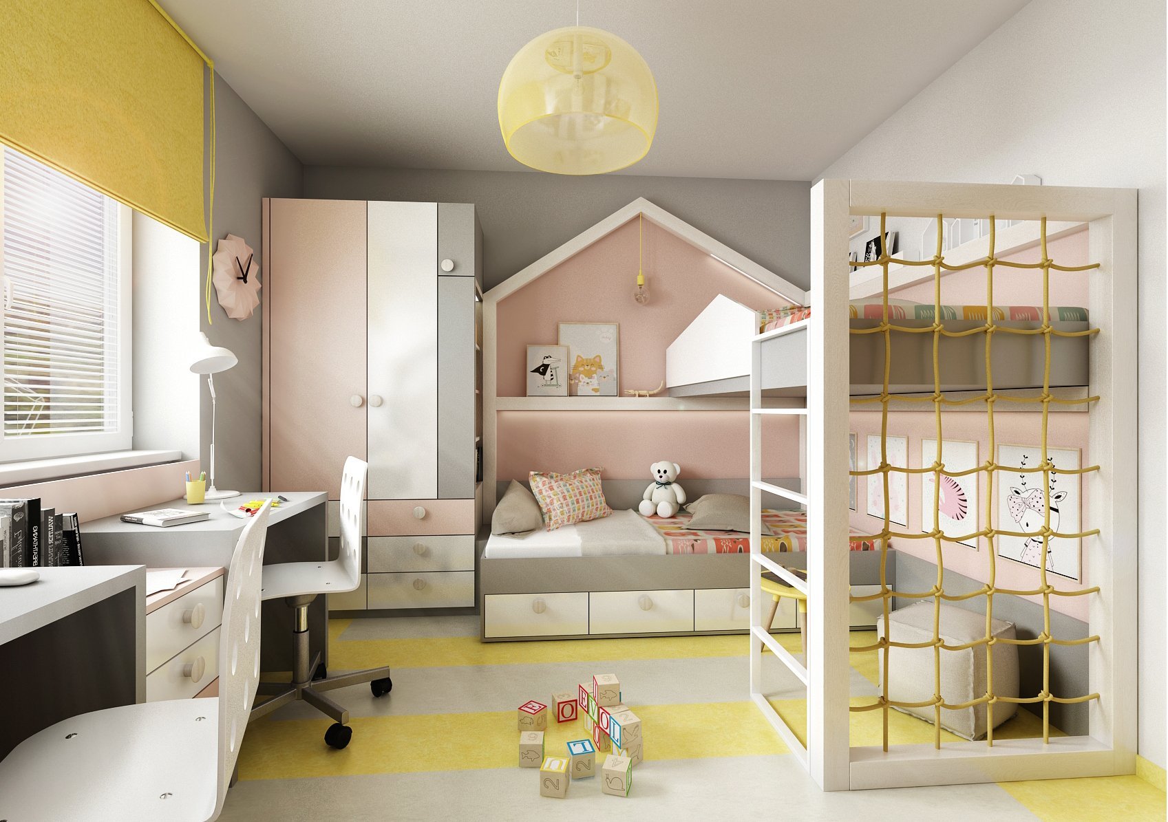 Пятиугольная детская комната для двоих
