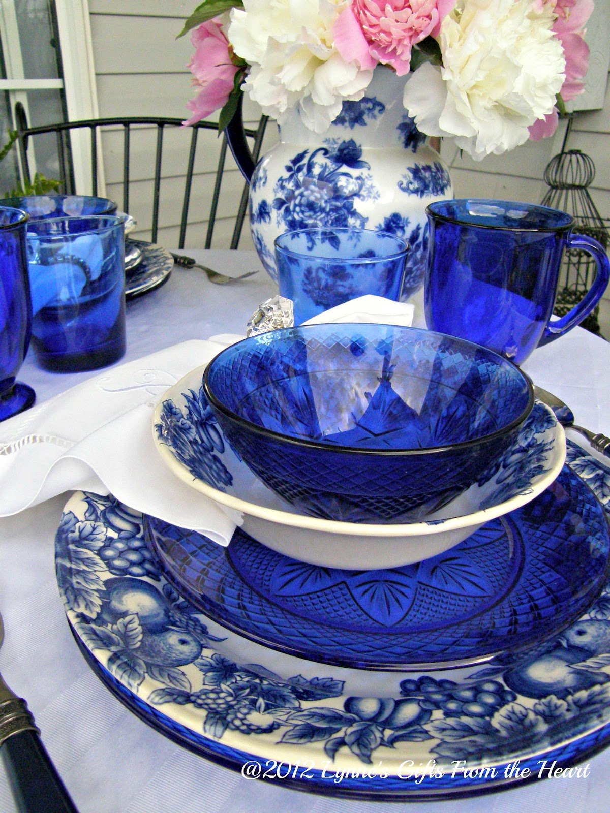 Сервировка с голубой посудой