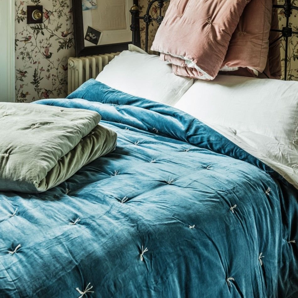Покрывало голубой бархат