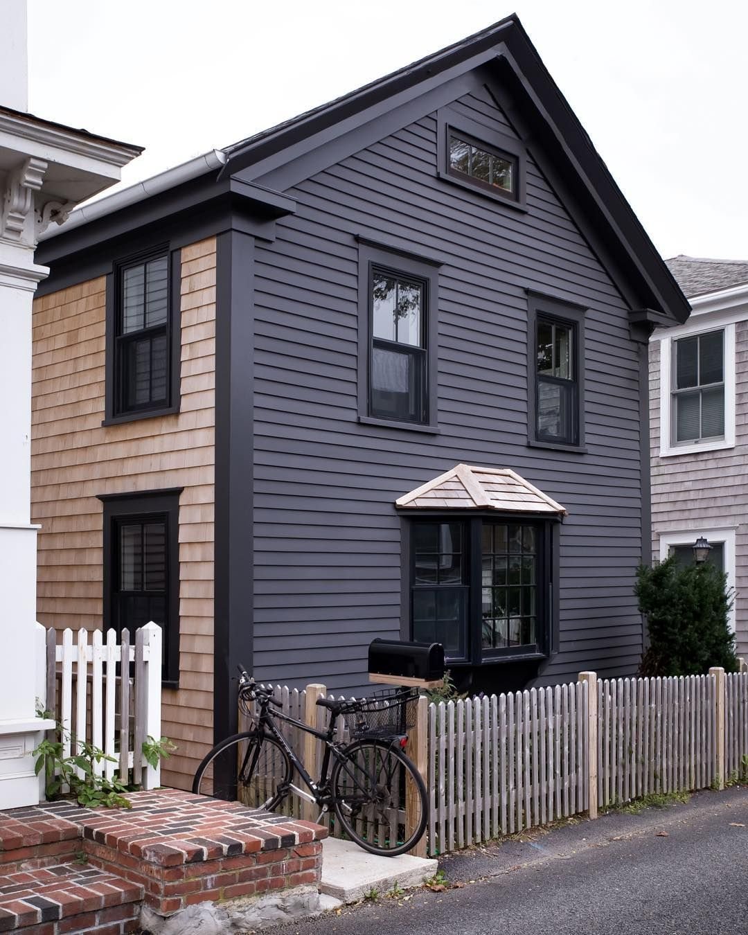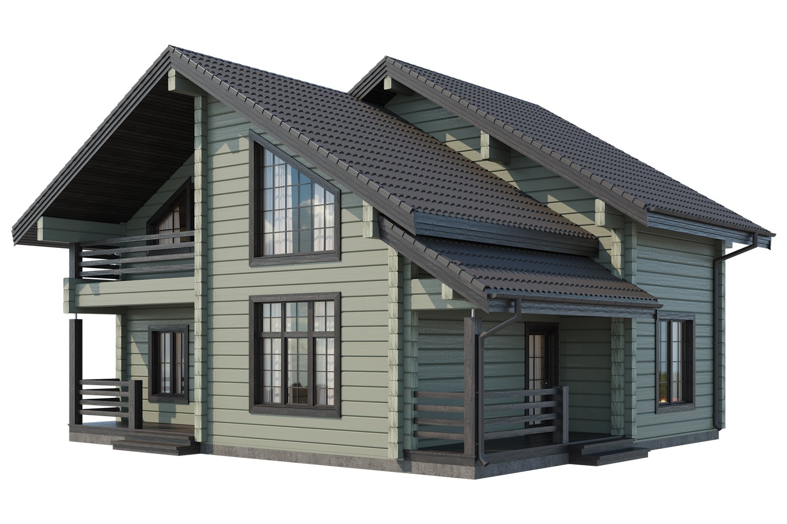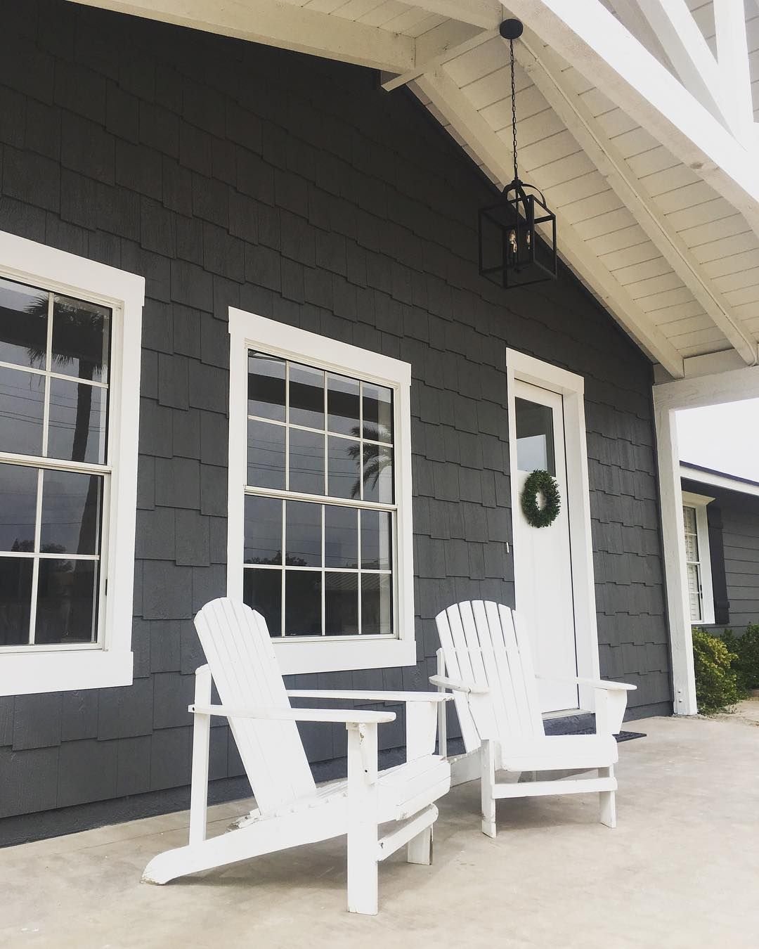 Серый дом с белыми окнами