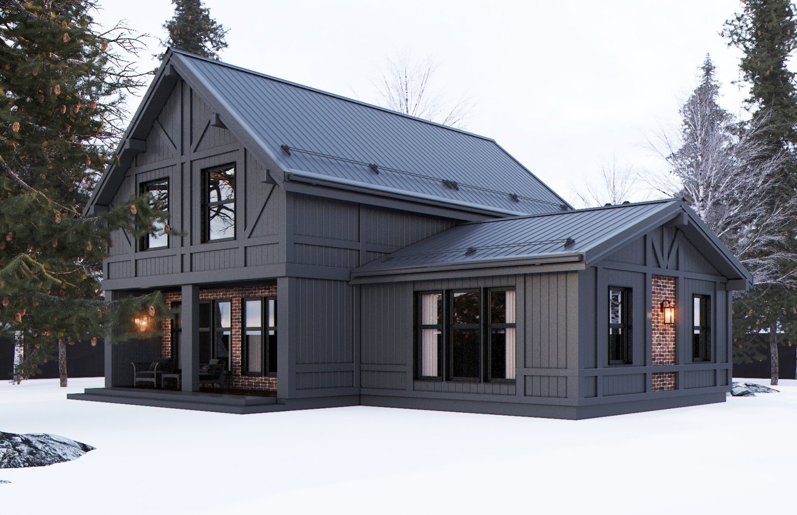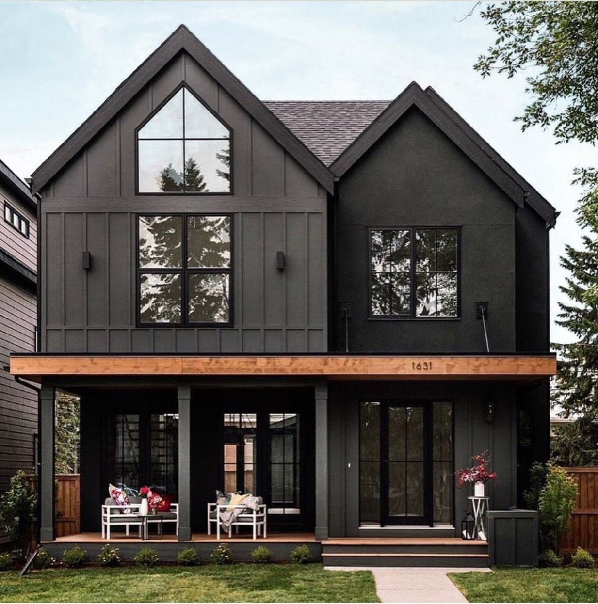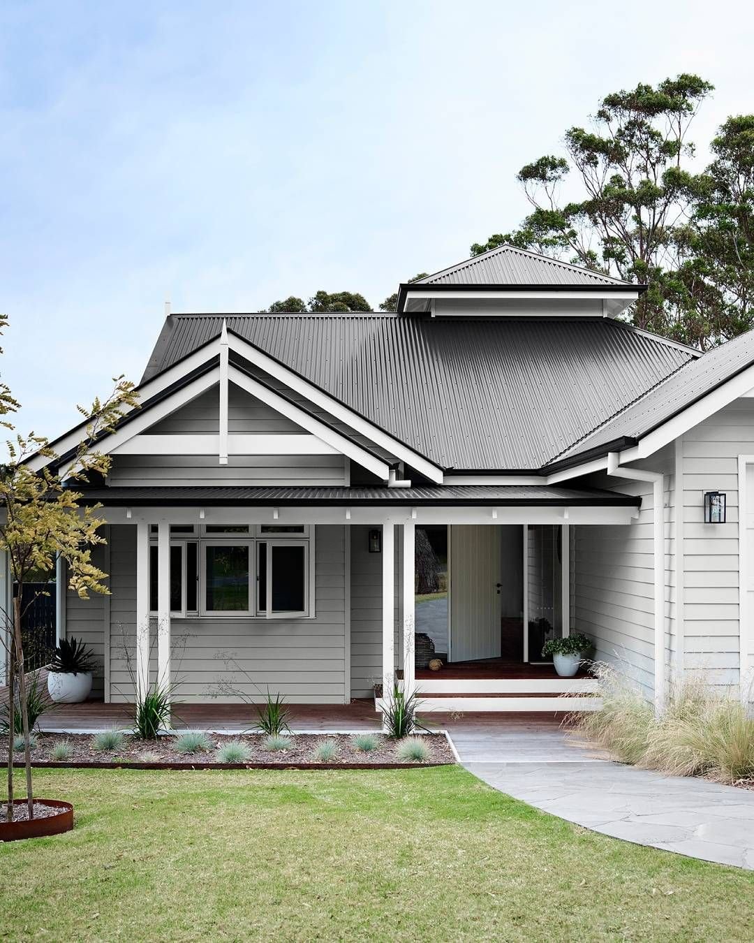 Серый дом с белыми окнами