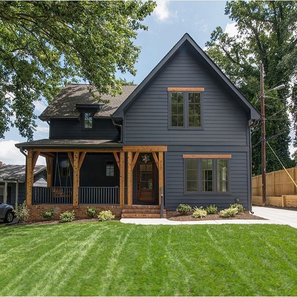 Серо синий деревянный дом