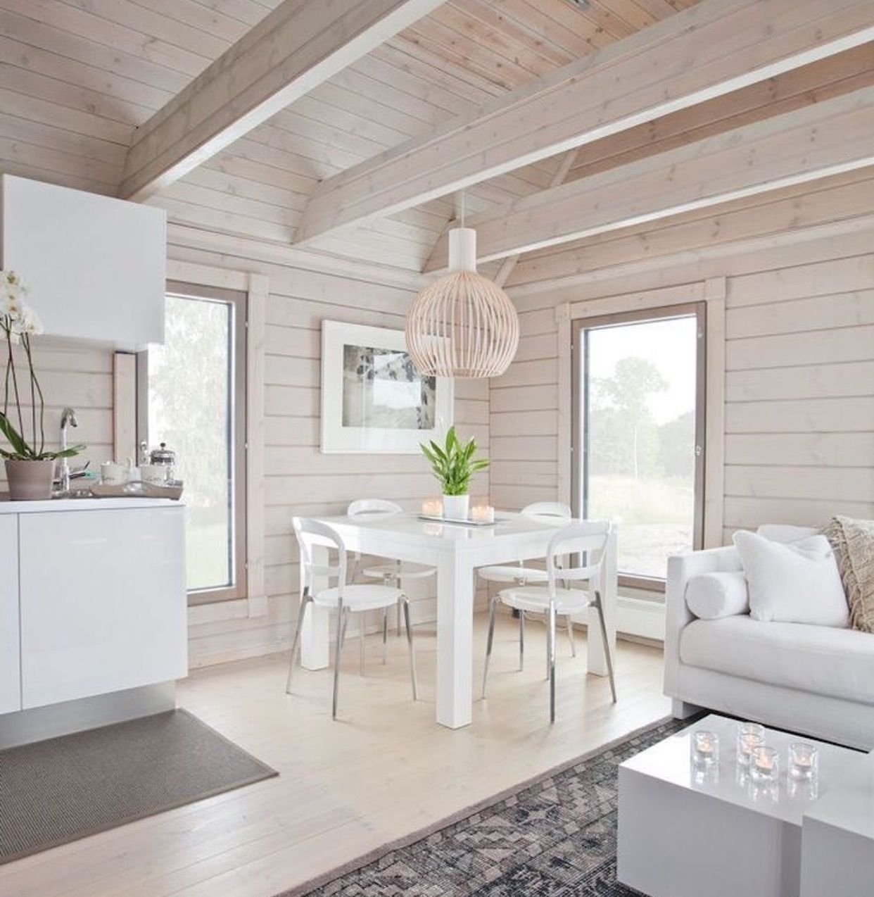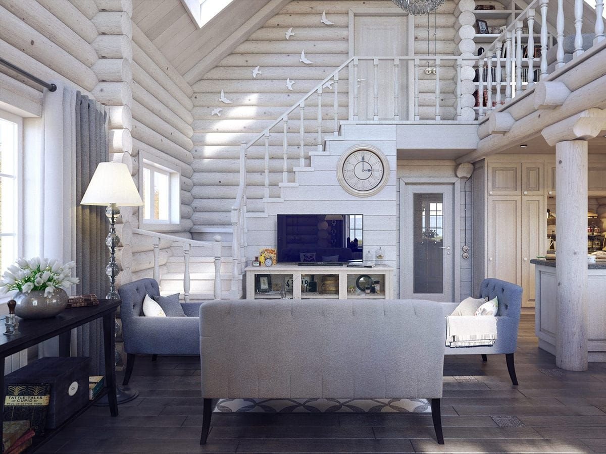 Интерьеры деревянных домов в белом цвете