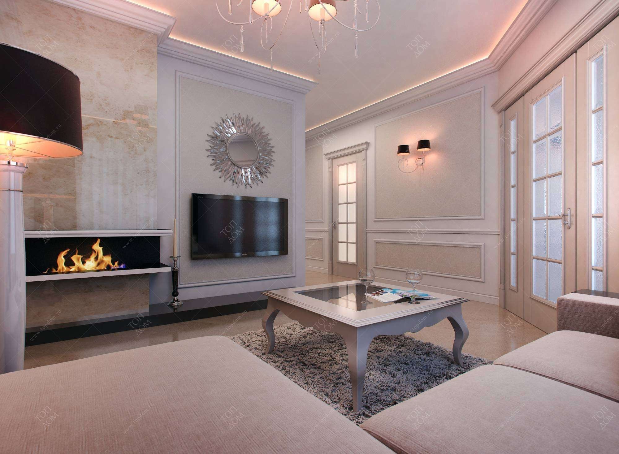 Гостиная с камином интерьер Неоклассика