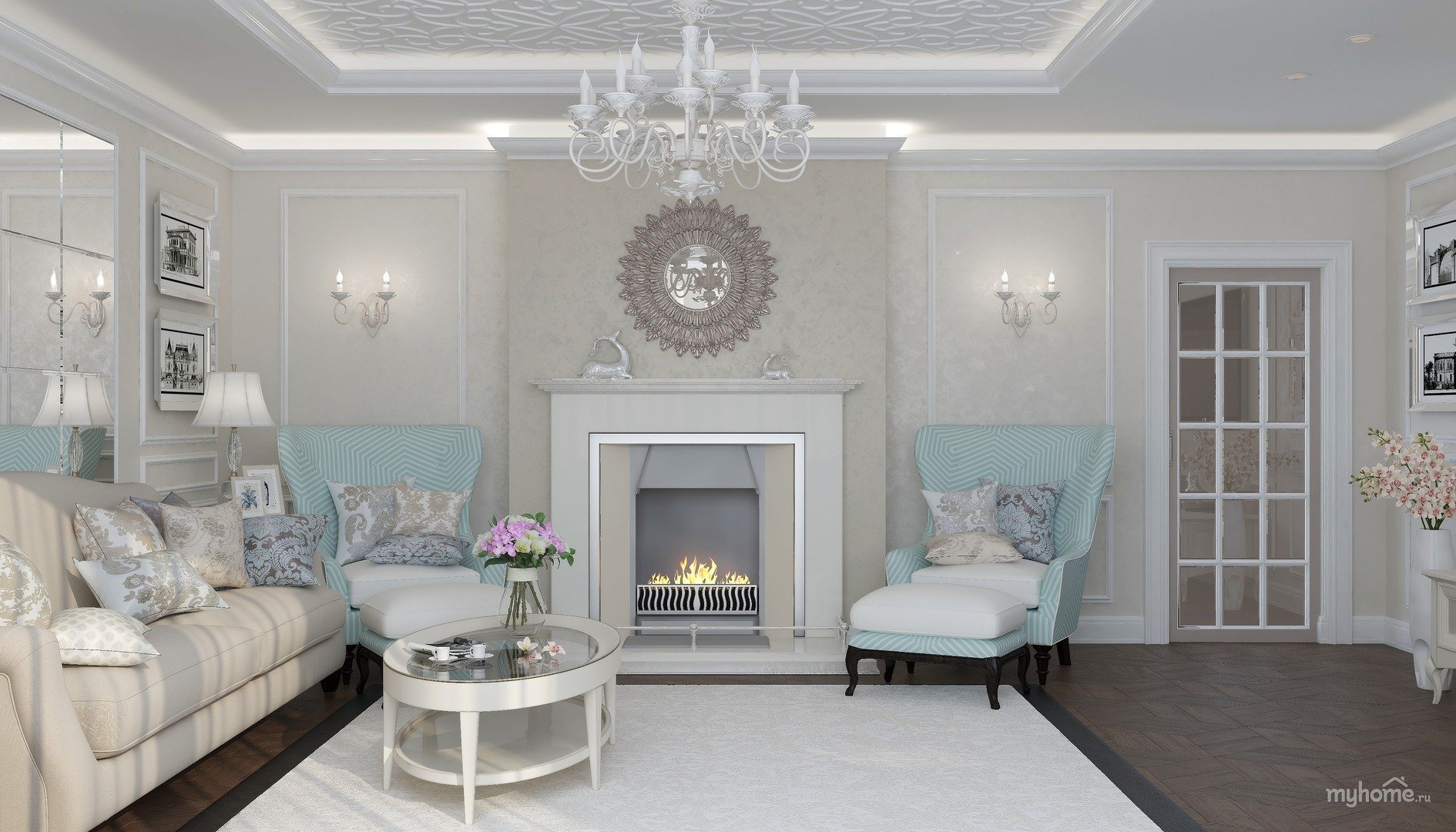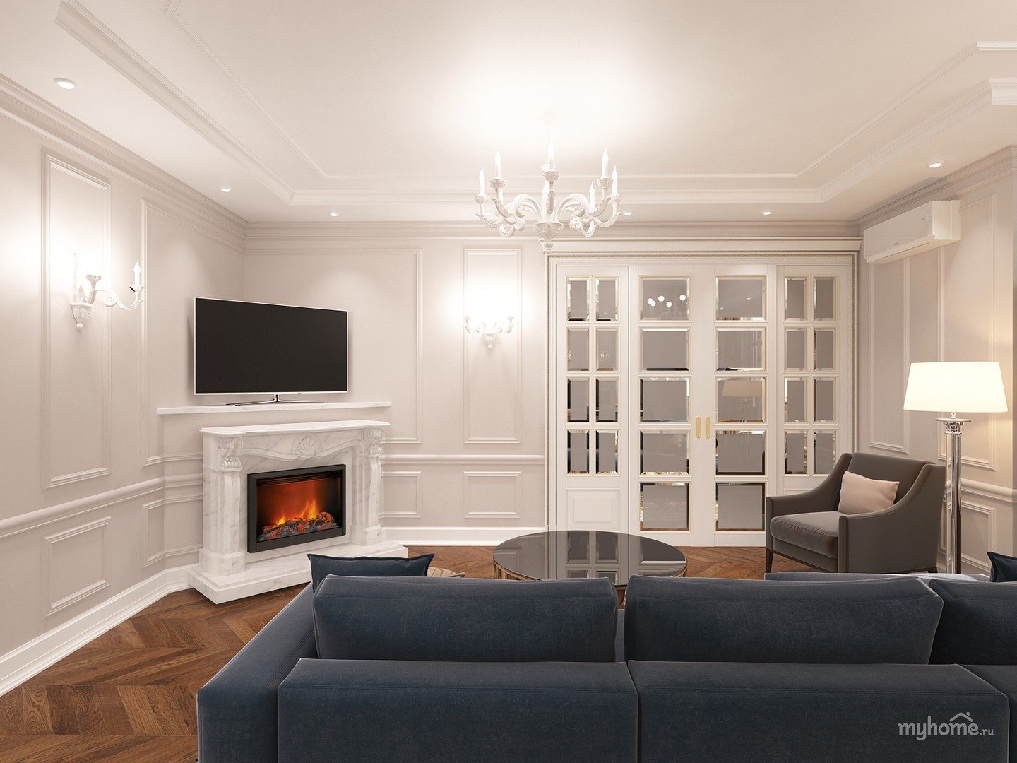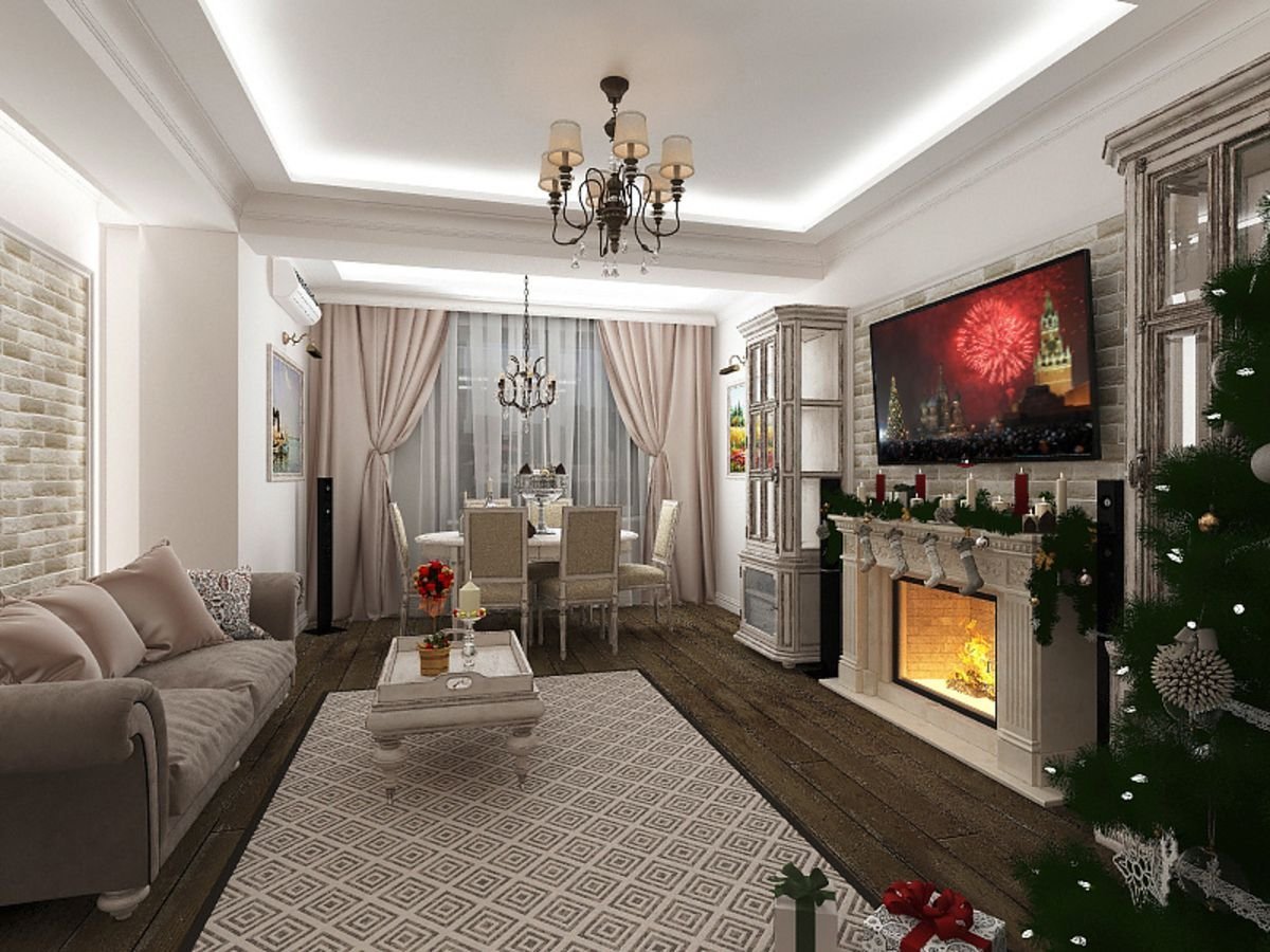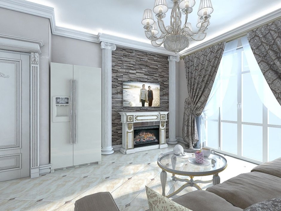 Гостиная 36 кв м Неоклассика