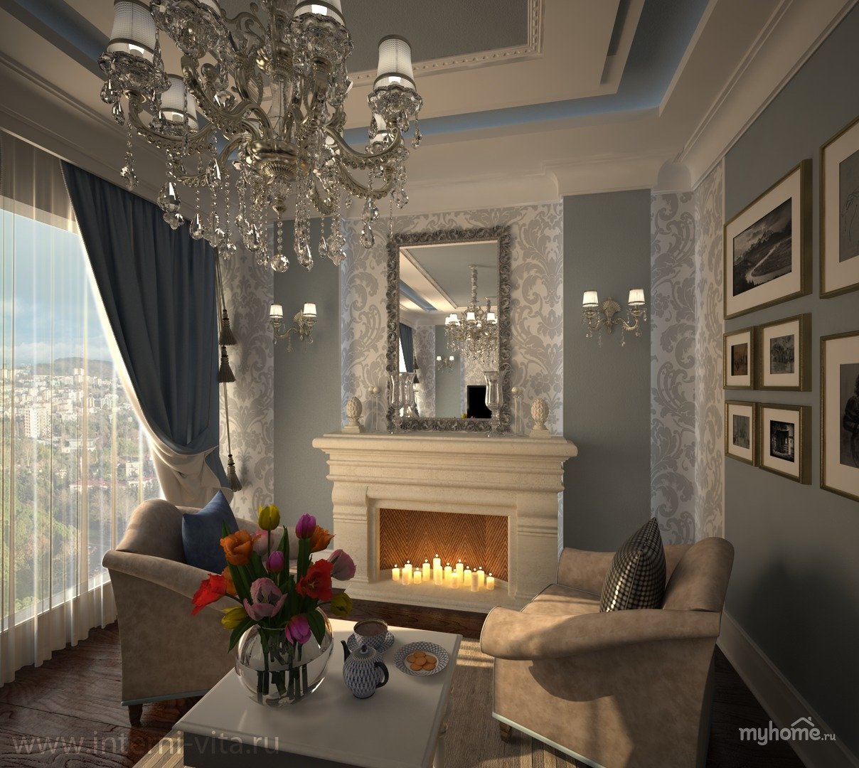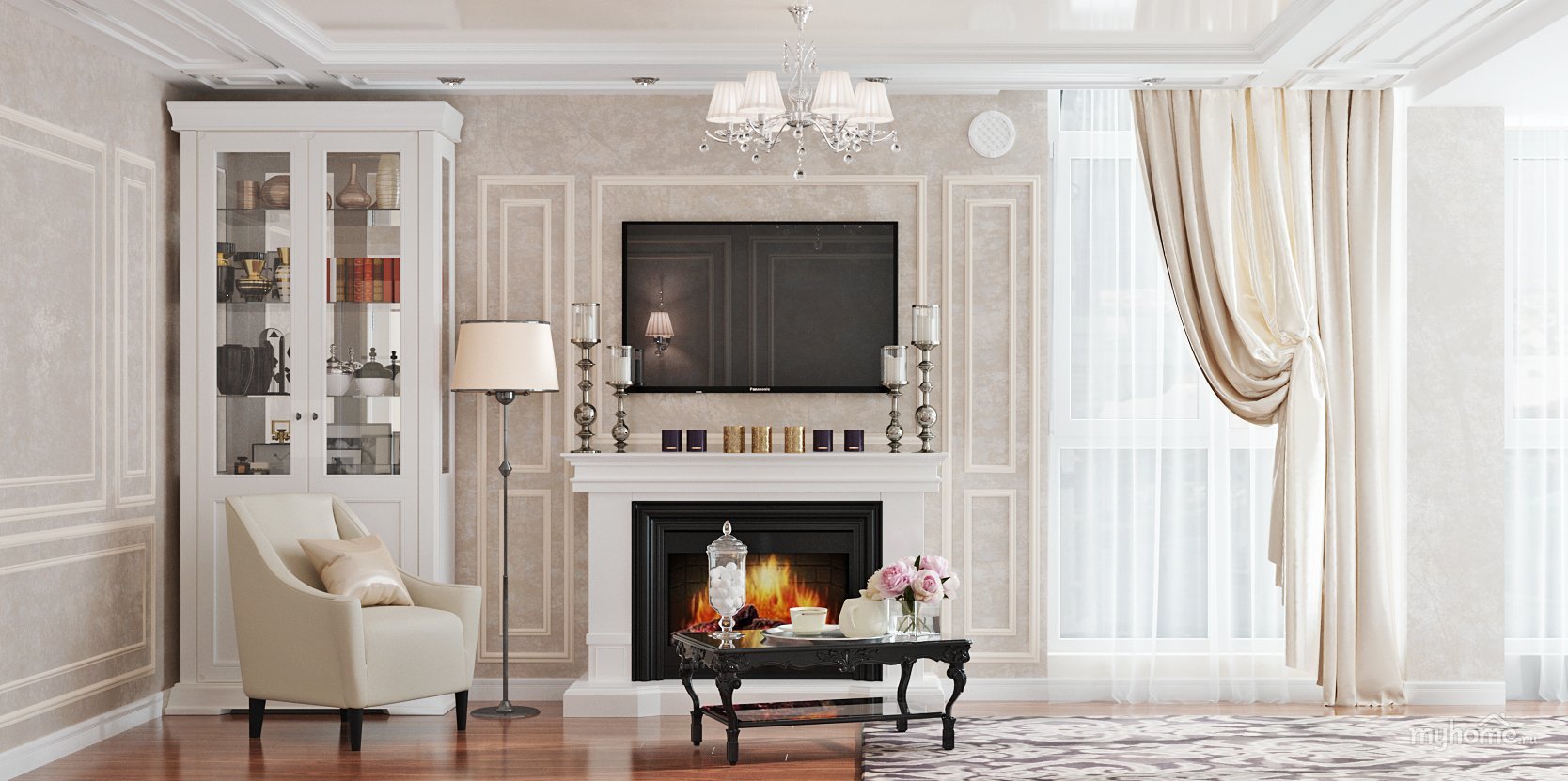 Гостинная камин Неоклассика