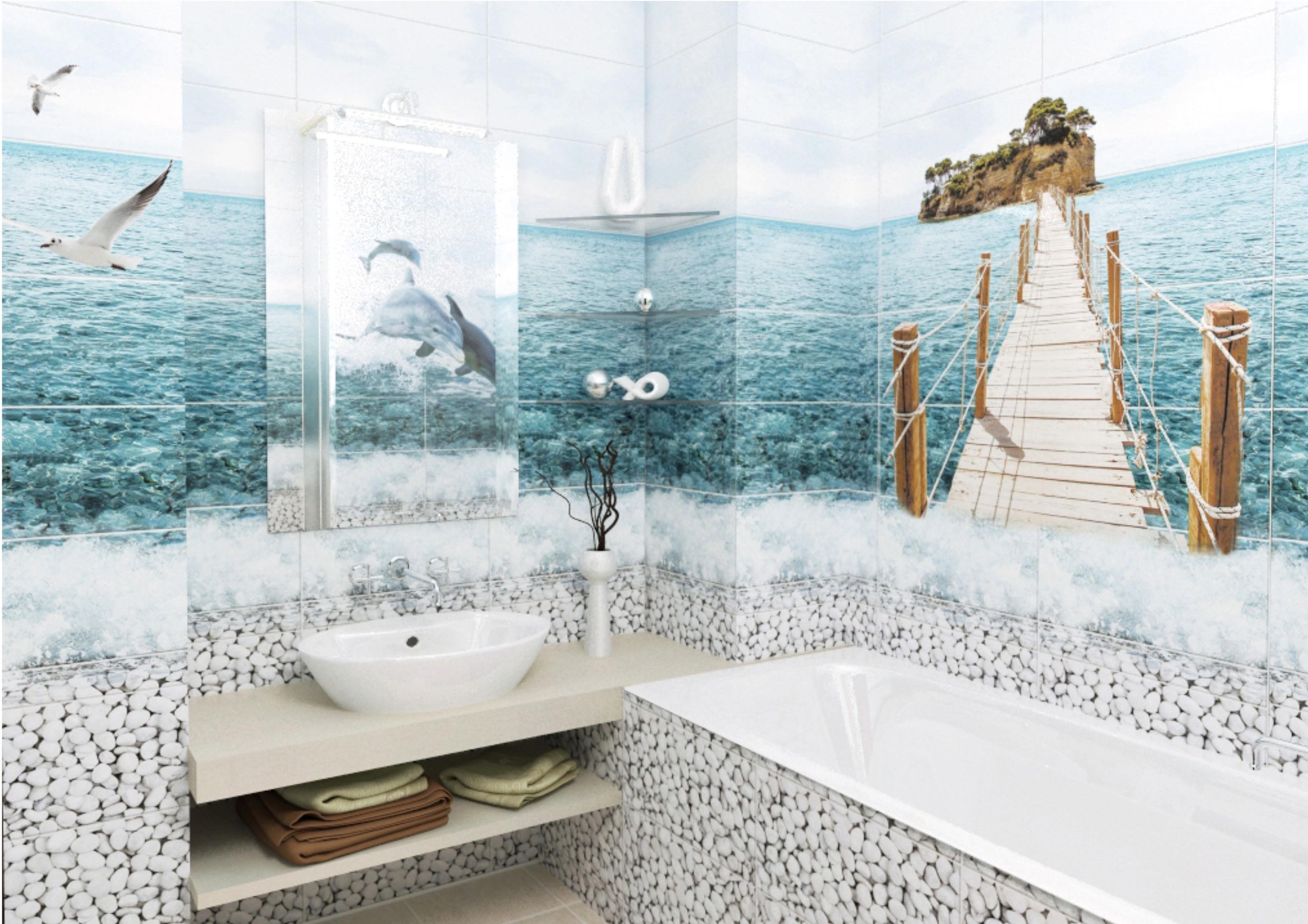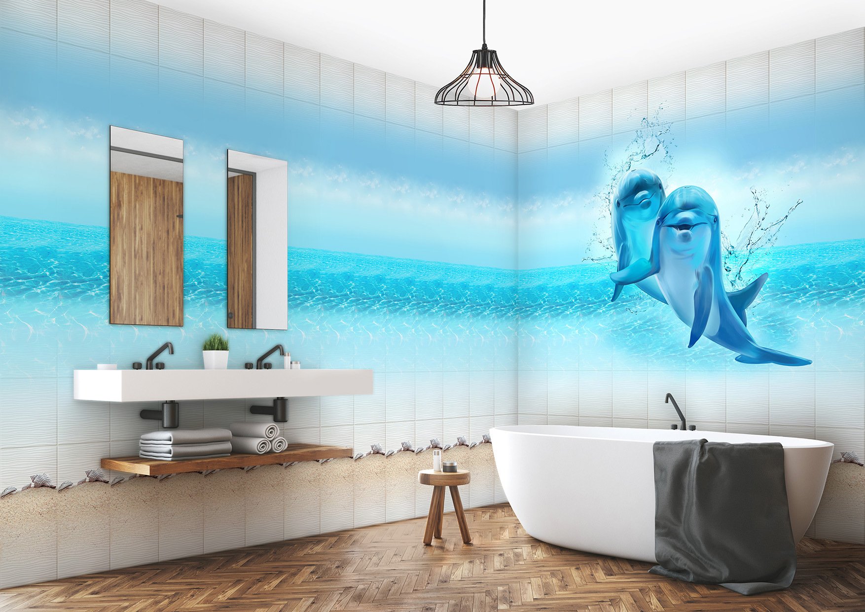 Панель стеновая ПВХ "Стелла" дельфины (980*480 мм)