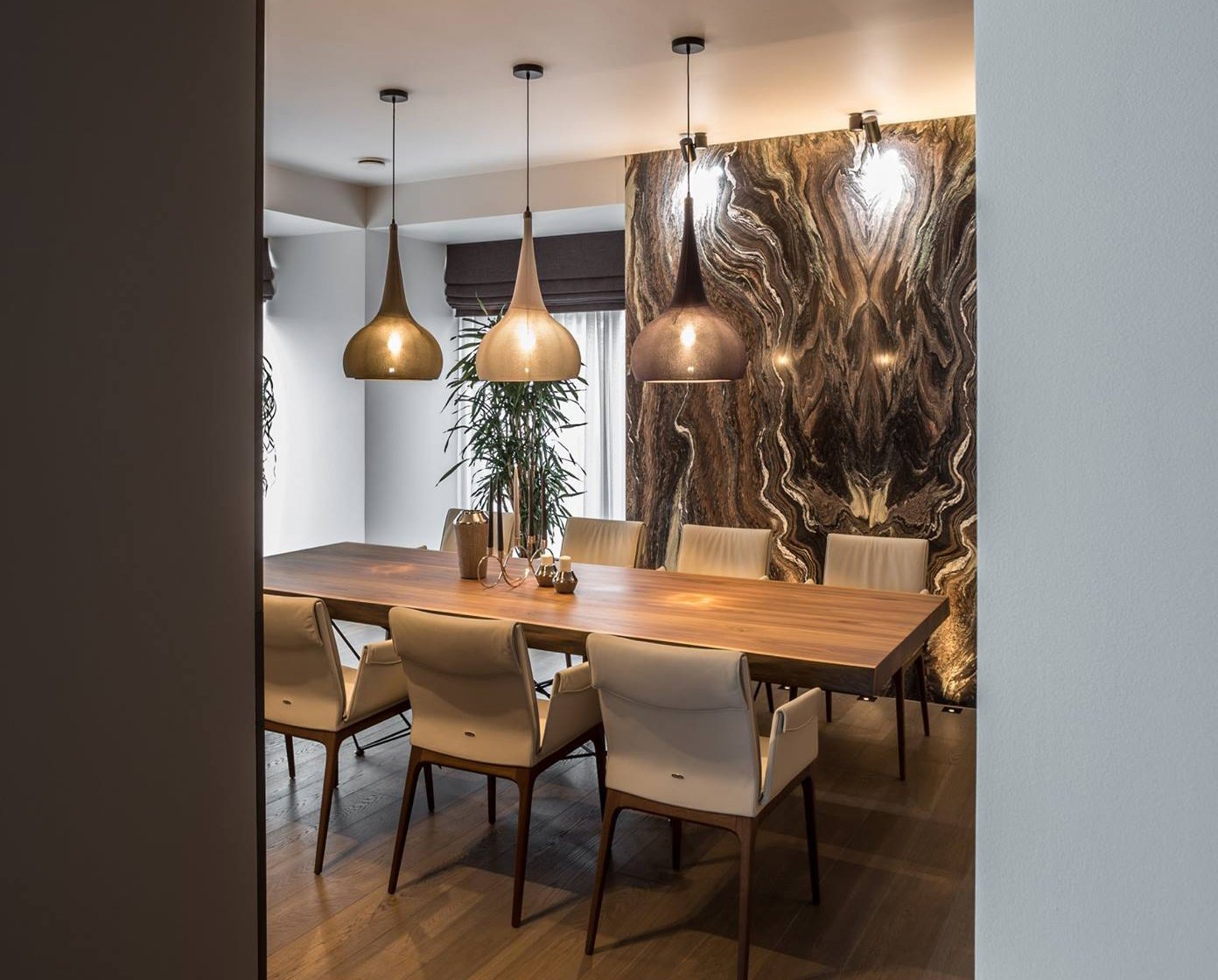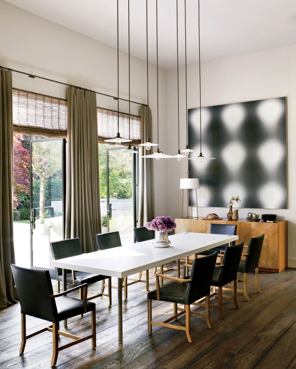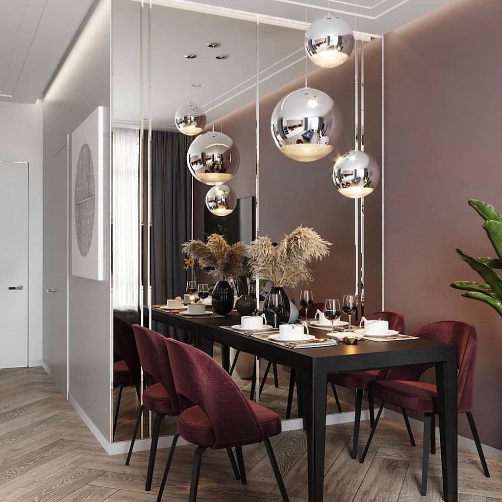 Подвесные светильники над столовой зоной
