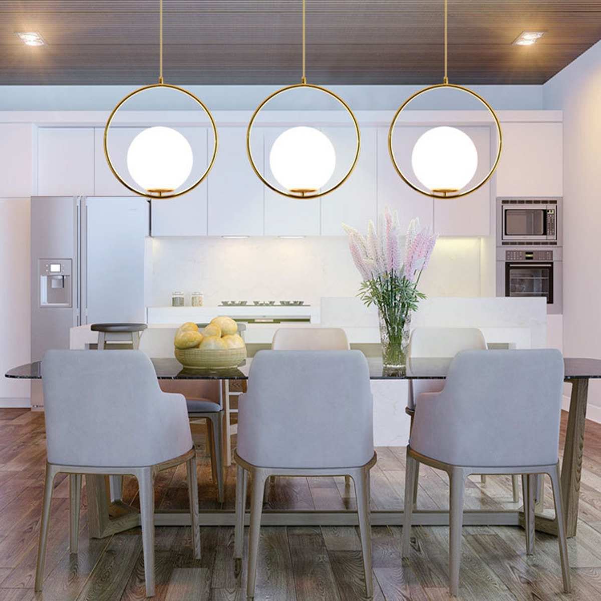 Подвесные светильники над обеденной зоной
