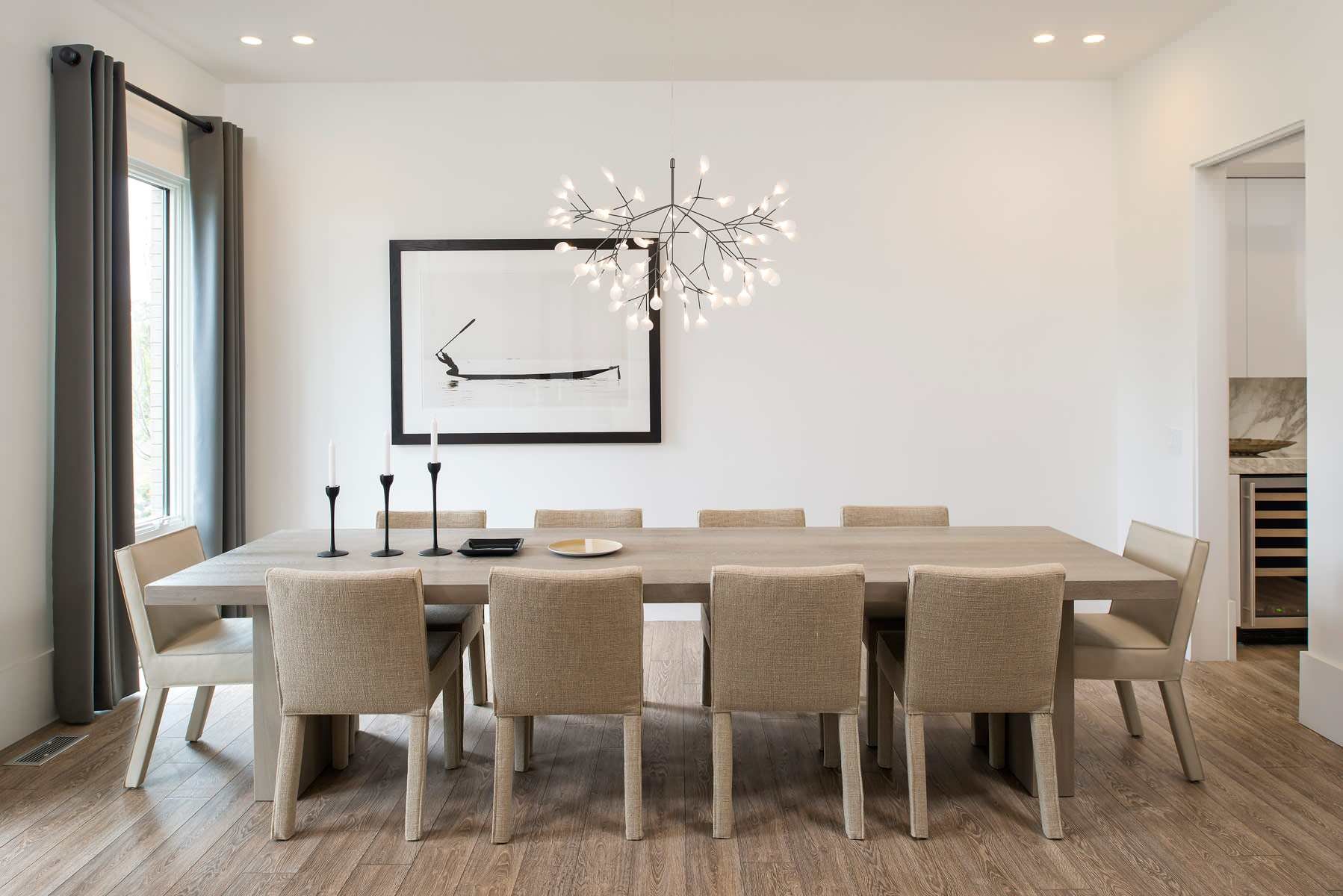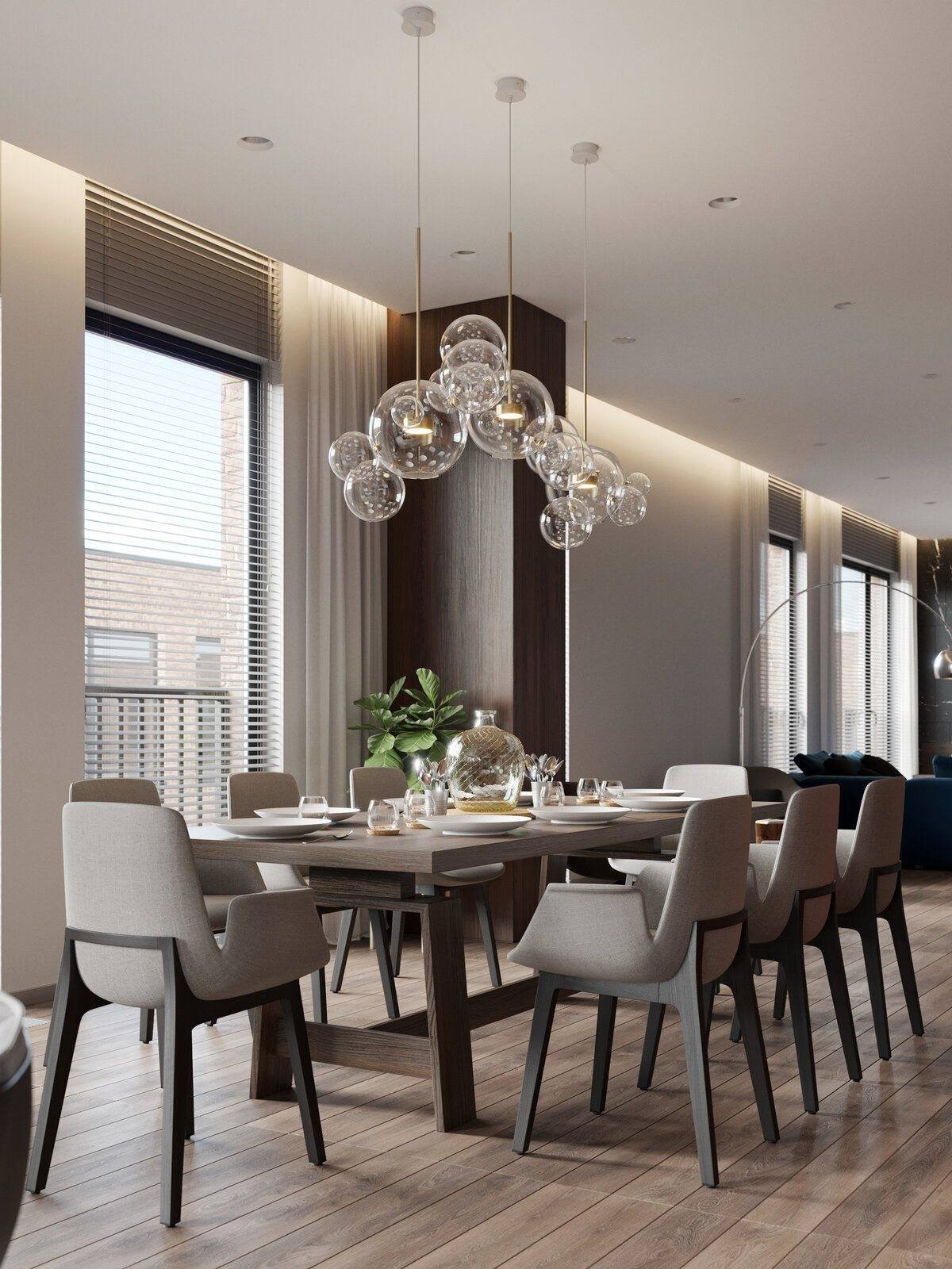 Люстра над обеденным столом в гостиной