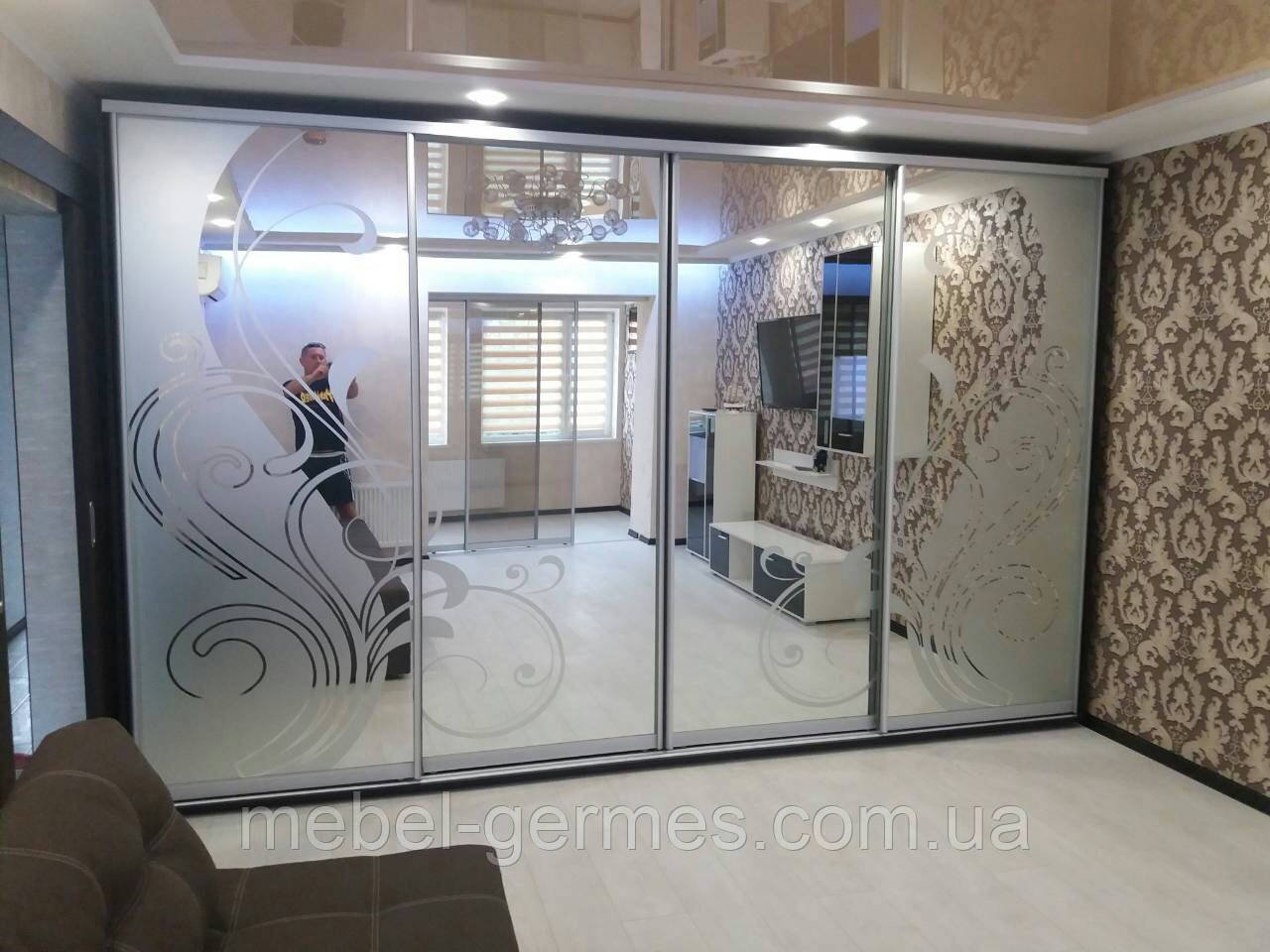 Шкаф купе 4 двери с зеркалом пескоструй