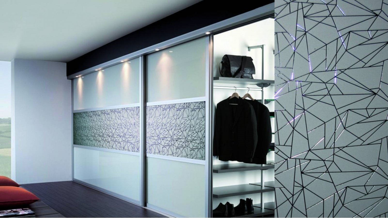 Шкаф купе с матовым стеклом и рисунком