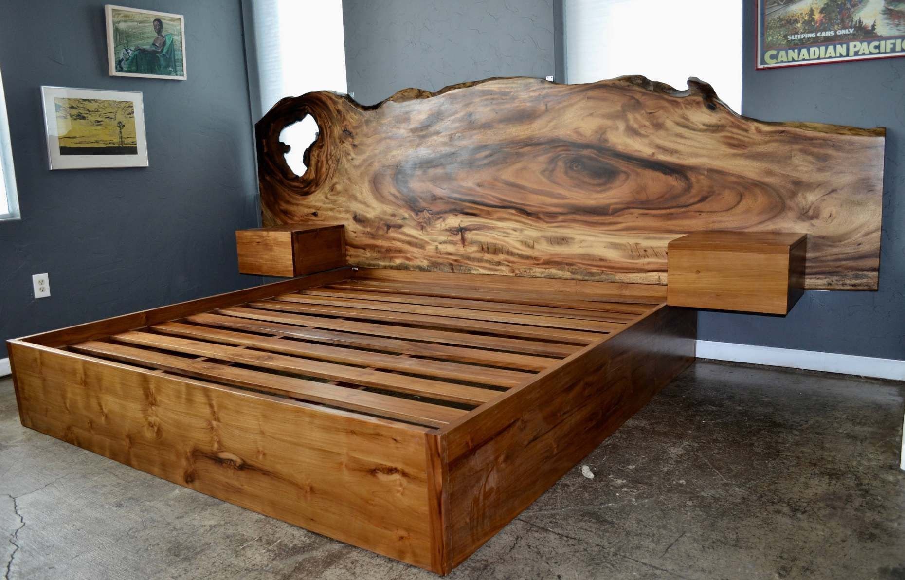 Кровать из слэба дерева лофт