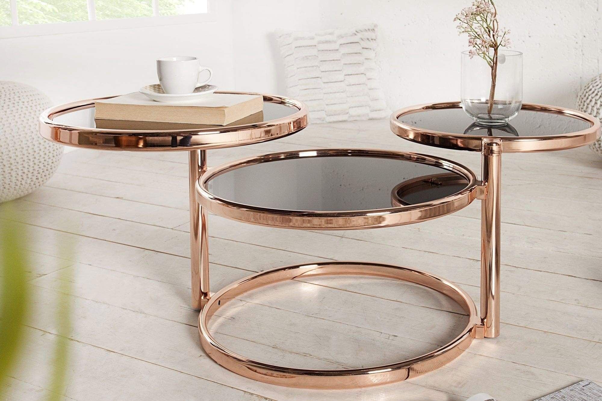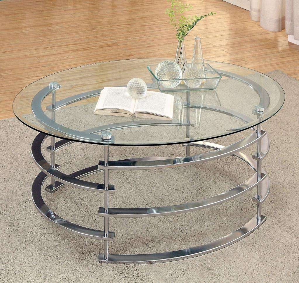 Кофейный столик из металла и стекла на колёсиках