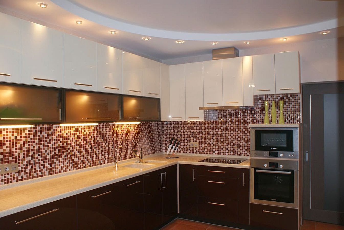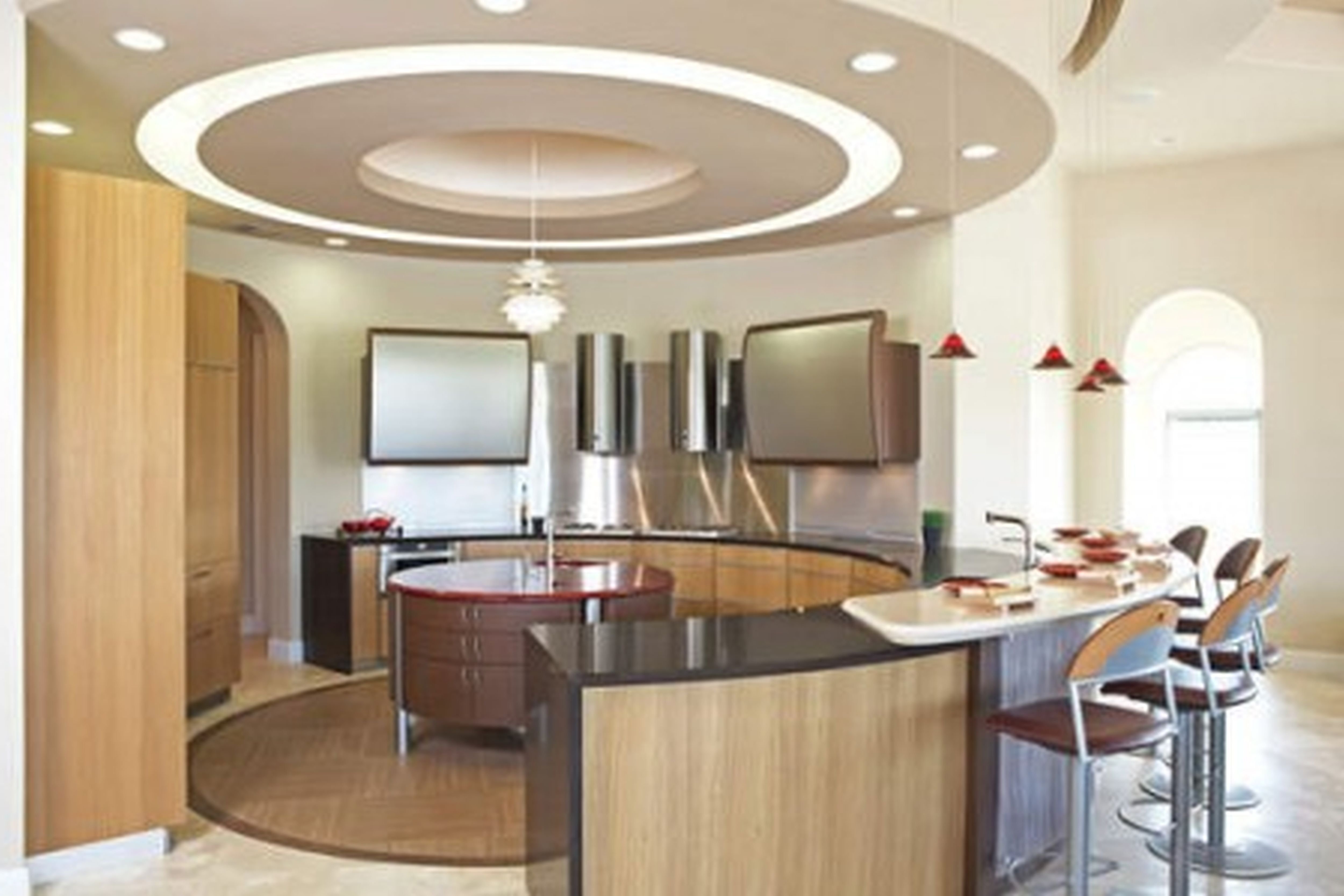 Красивые потолки из гипсокартона на кухне