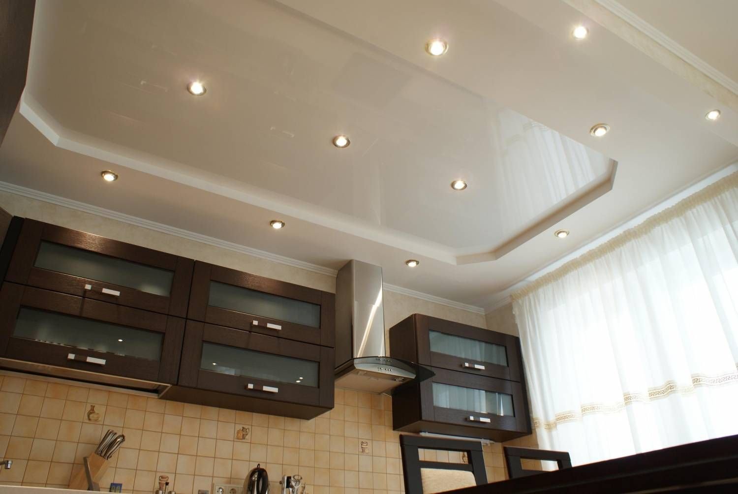Красивые натяжные потолки для кухни