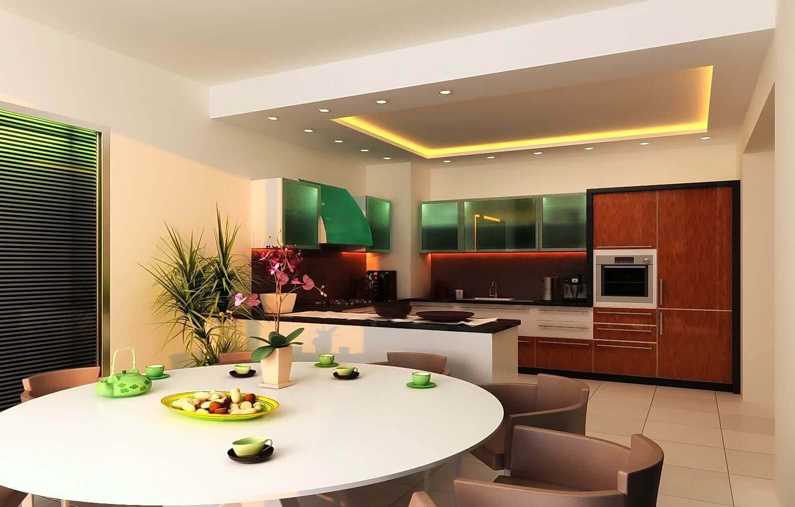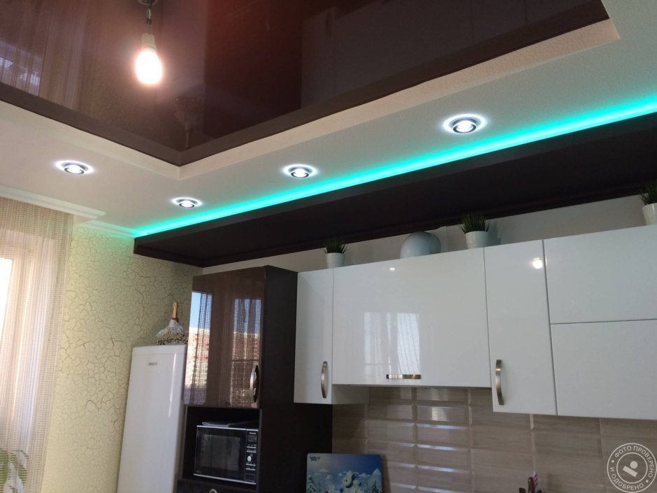 Подсветка потолка на кухне