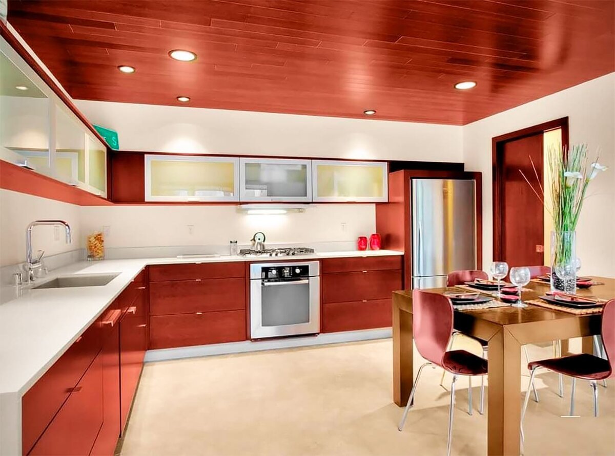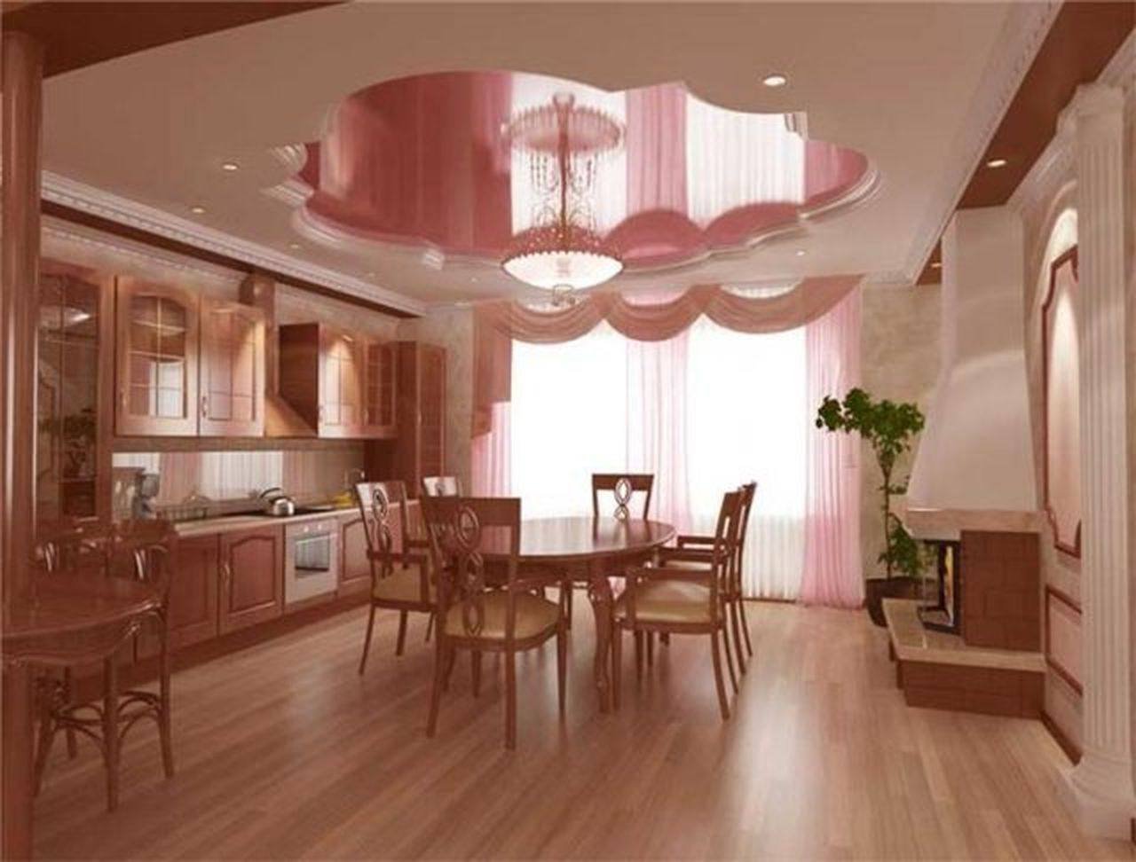 Дизайн потолка на кухне