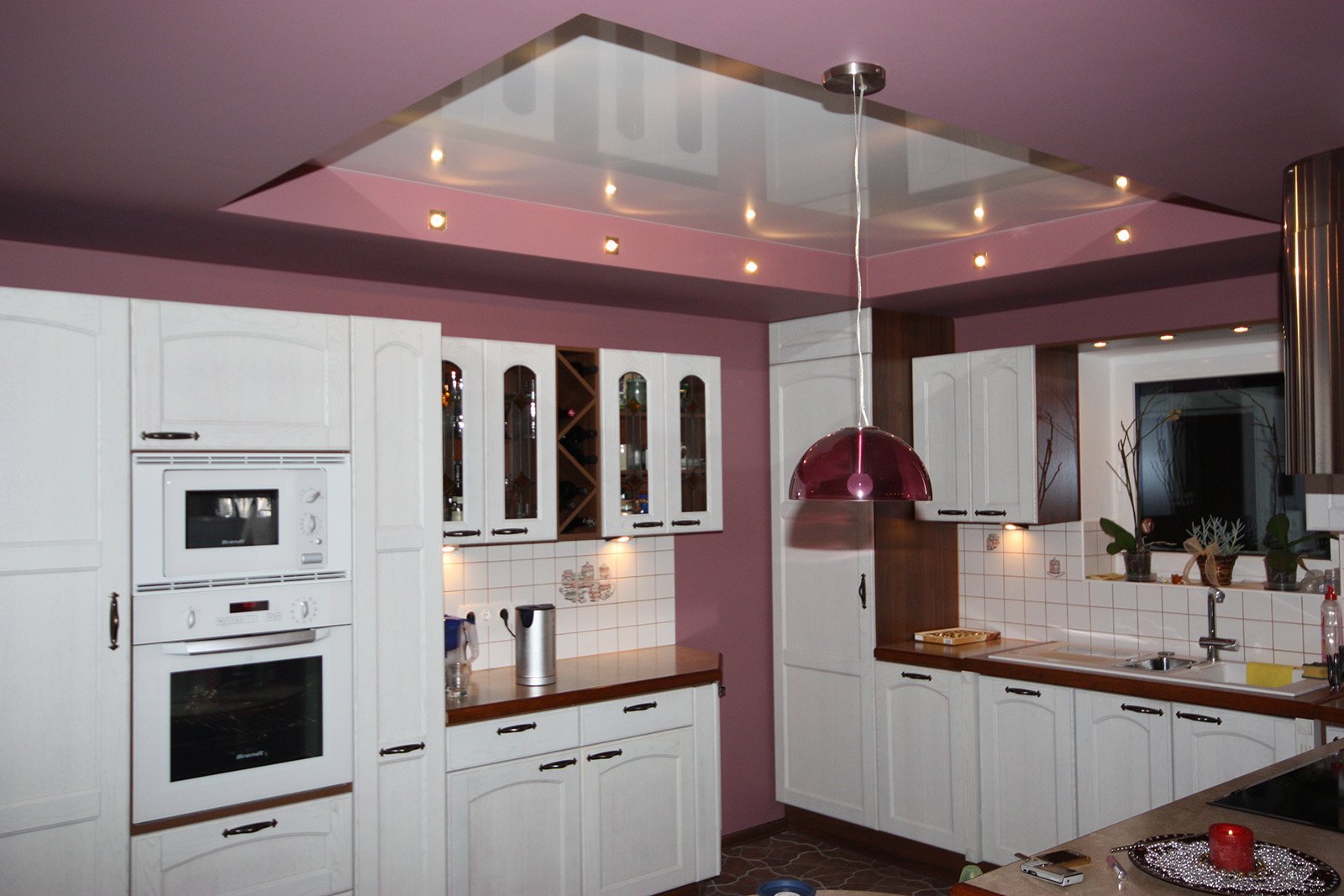 Цветной потолок на кухне