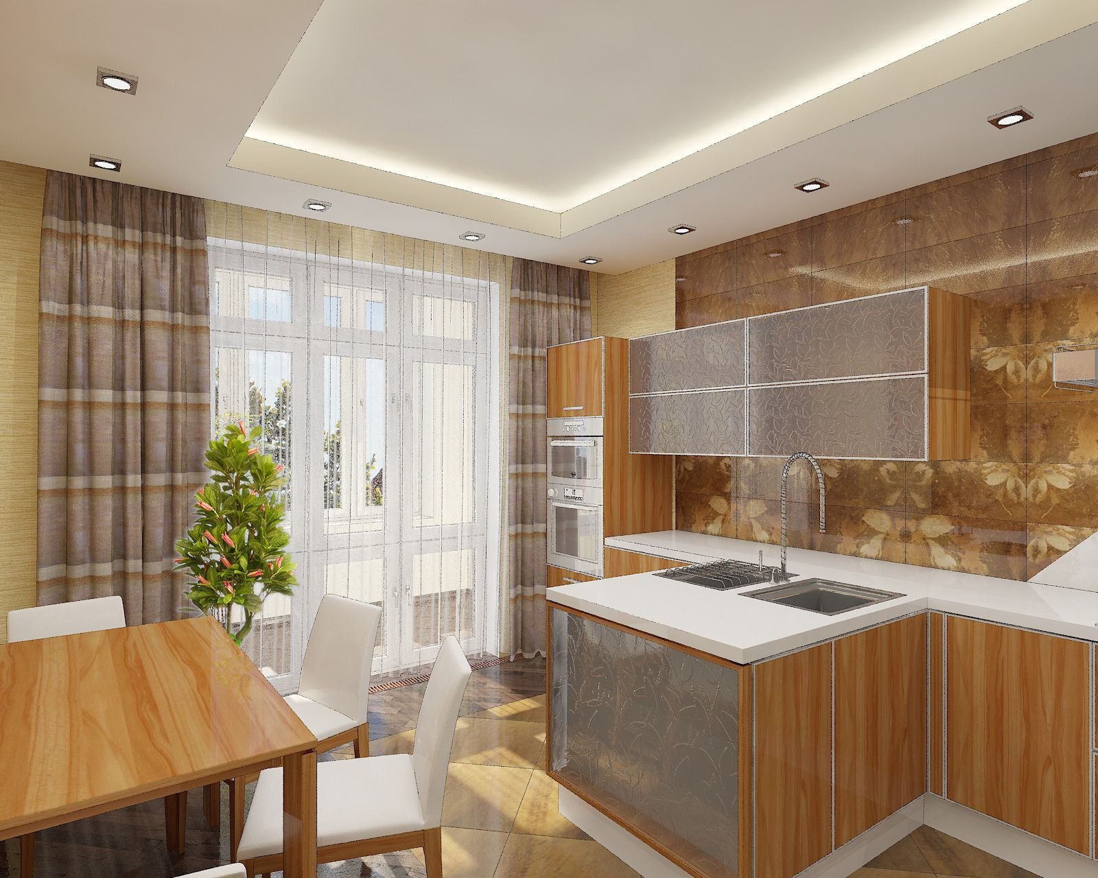 Красивые гипсокартонные потолки кухни