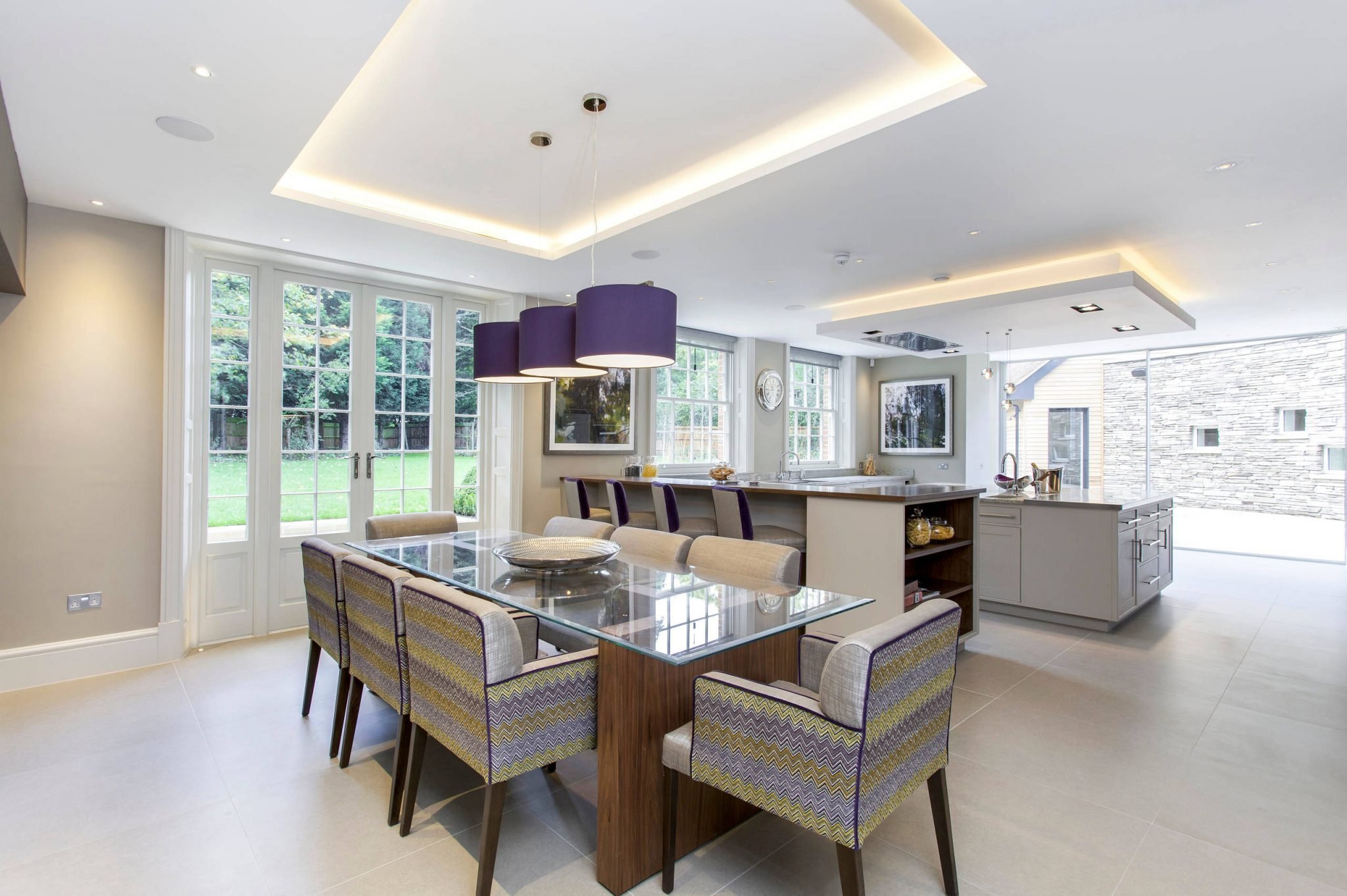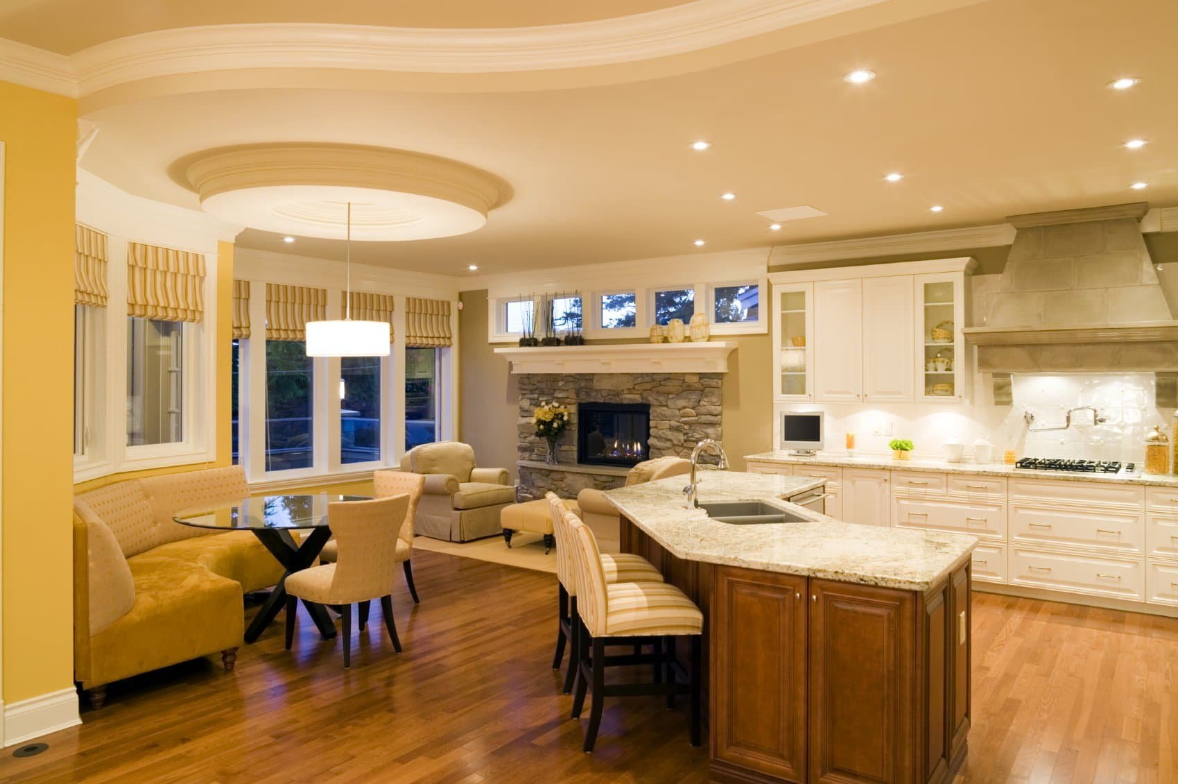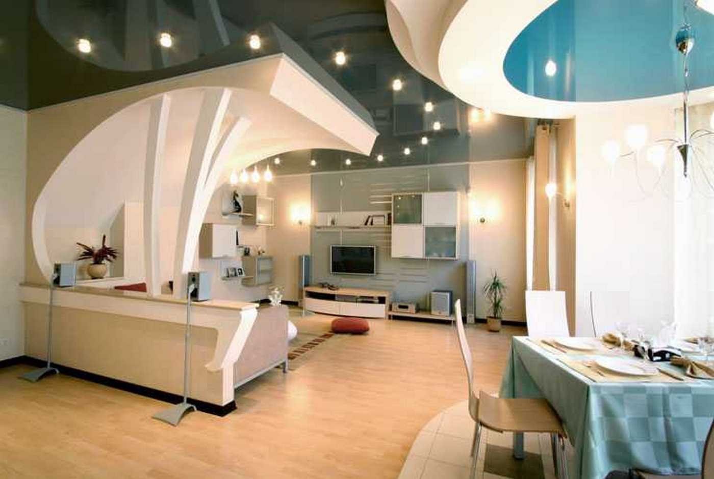 Многоуровневый потолок в кухне гостиной