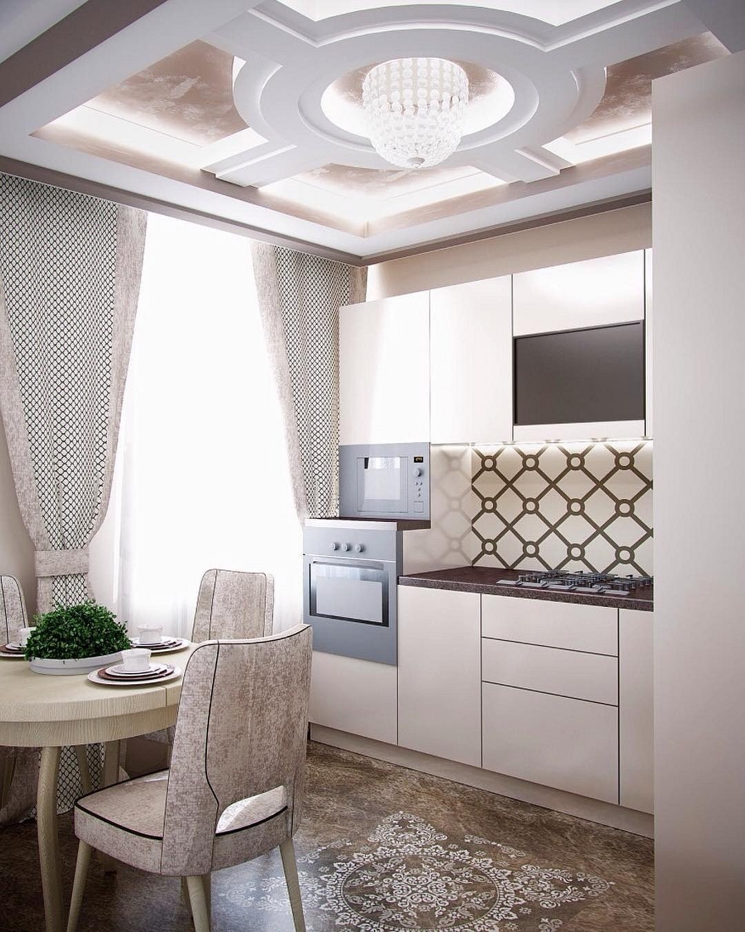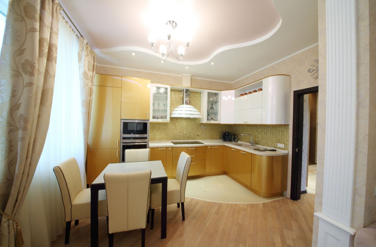 Красивый потолок в кухне квартире