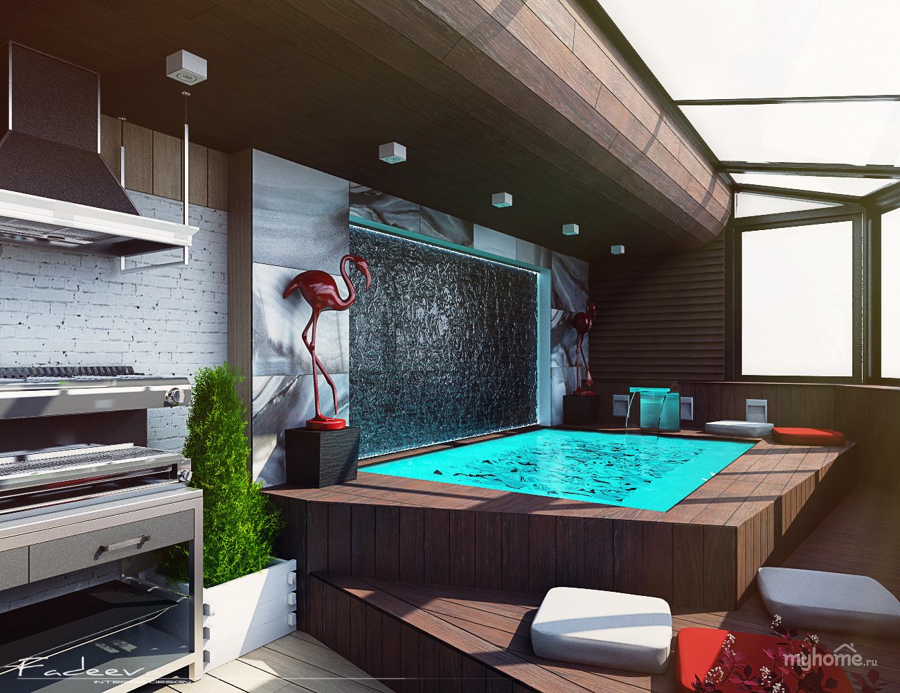 Планировка террасы с бассейном