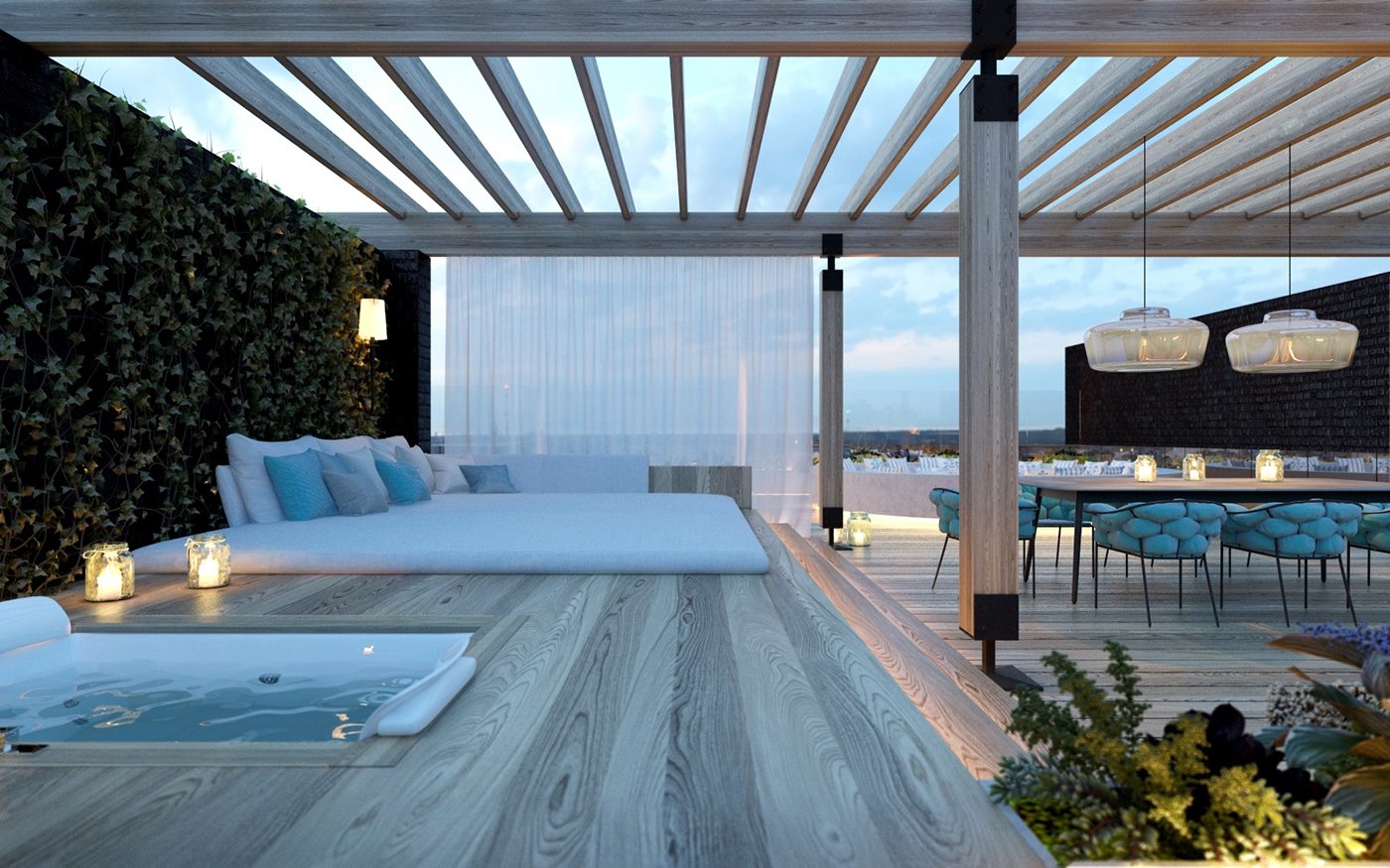 Терраса на крыше с джакузи