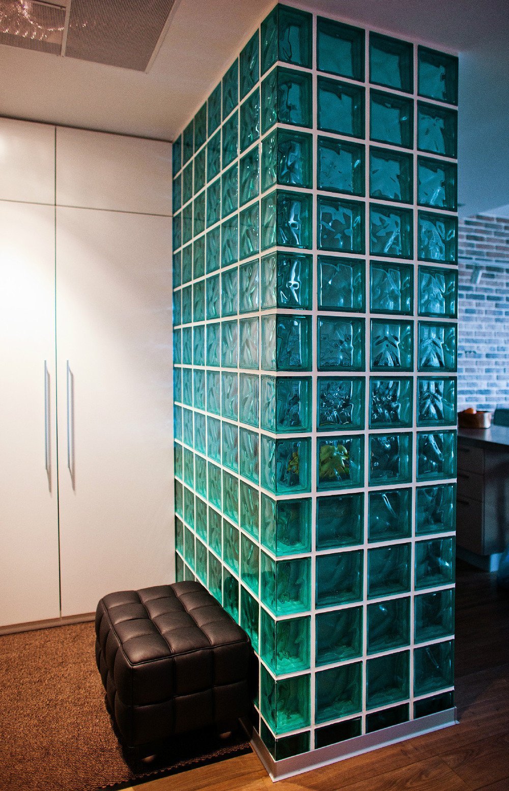 Перегородка из стеклоблоков в гостиной