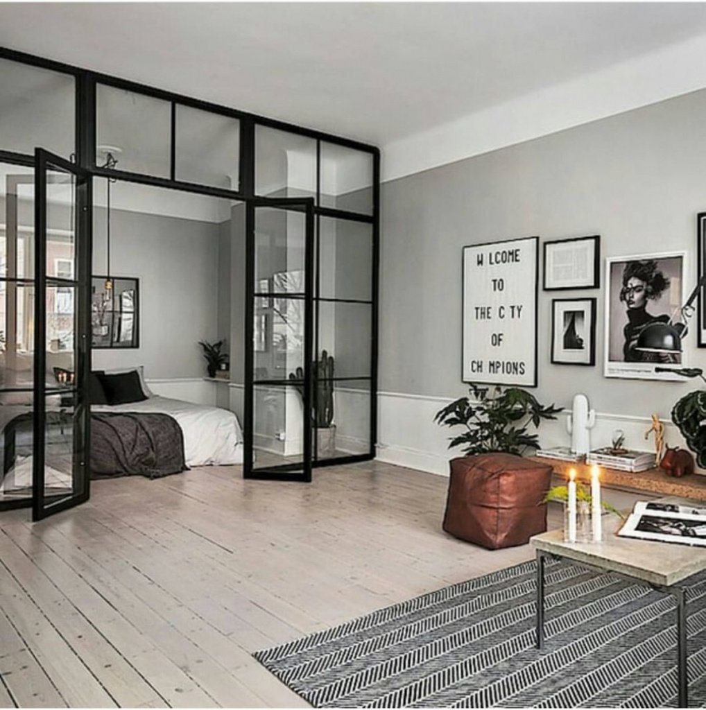 Стеклянные перегородки для зонирования пространства в комнате